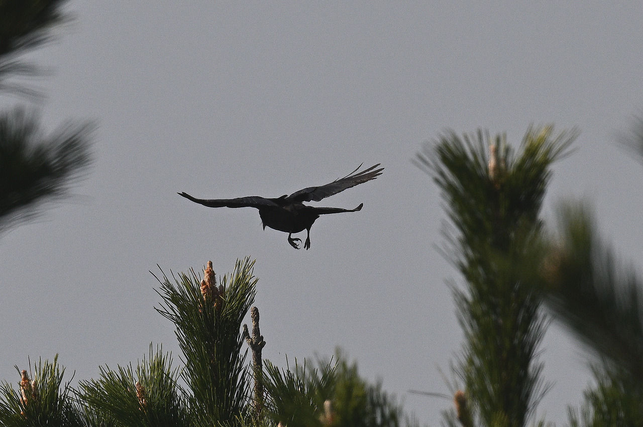 갑자기 검은 새가 휙 날아 나무가 많은 곳으로 들어갔다