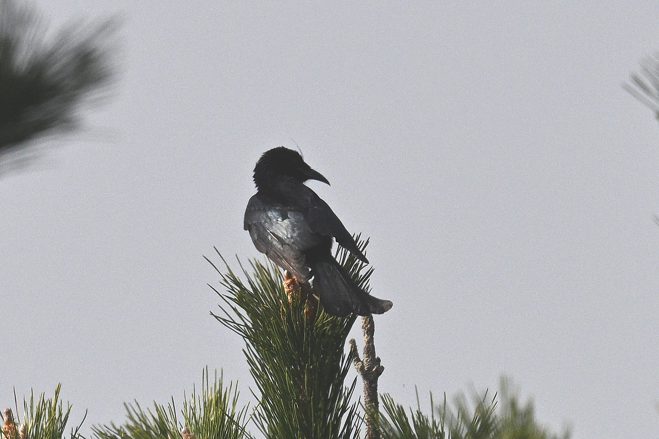 나무 꼭대기에 앉은 뒷모습만 보여주었다