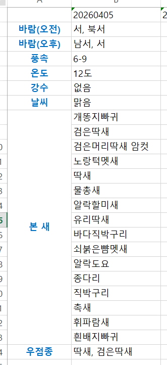 검은머리딱새와 노랑턱멧새, 유리딱새 등을 보았다