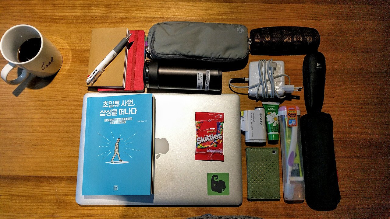 하면서 가방에 무엇이 들었을까 꺼내봤다. 하나라도 줄여볼까 싶었다.