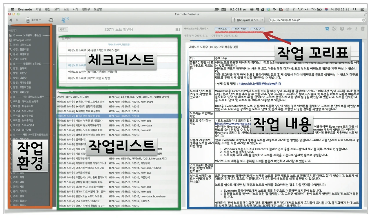 에버노트 사용자라면, 기본적으로 에버노트 수집과 관리 정도는 하고 있다. 이제 부터는 하나의 업무공간(One Workspace)으로 작업하기를 바라며, 이를 위해서는 분산되어 저장되어 있을 것부터 관리가 필요하다. 이후 체계적인 자료 분석(노트제목+태그)까지 해준다면 좋겠다.
