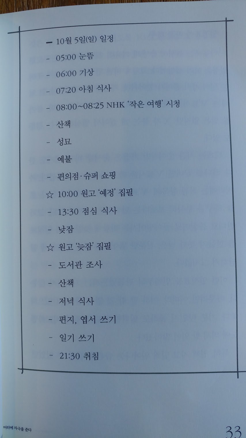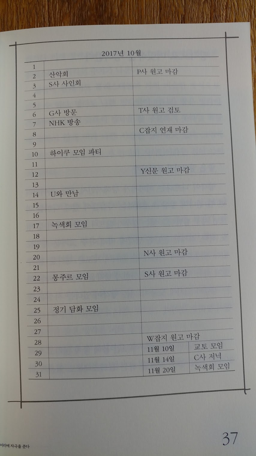 이 책에서 하나 권해주는 것이 '월간 일정표'이다. 해당 부분은 바로 적용하려고 한다.