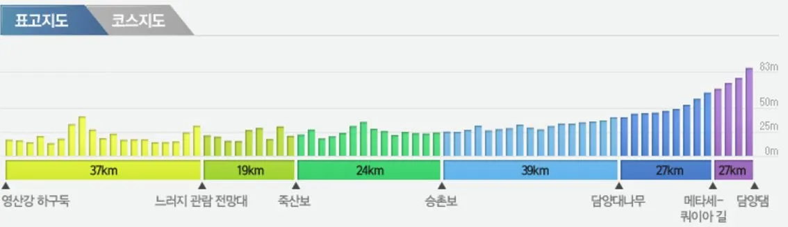 영산강 코스는 다음과 같다.