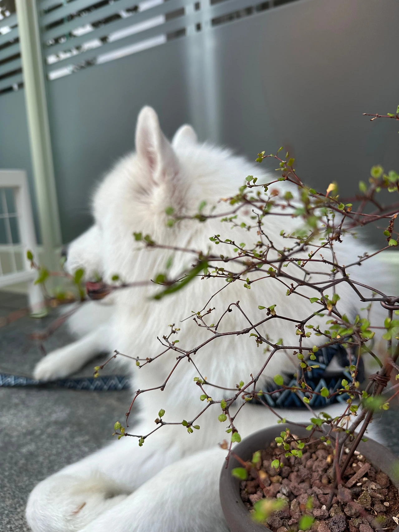 나는 테라스에 앉아서 지나가는 강아지 친구들이랑 인사를 하고 놀아. 정발산에는 강아지들이 많아.