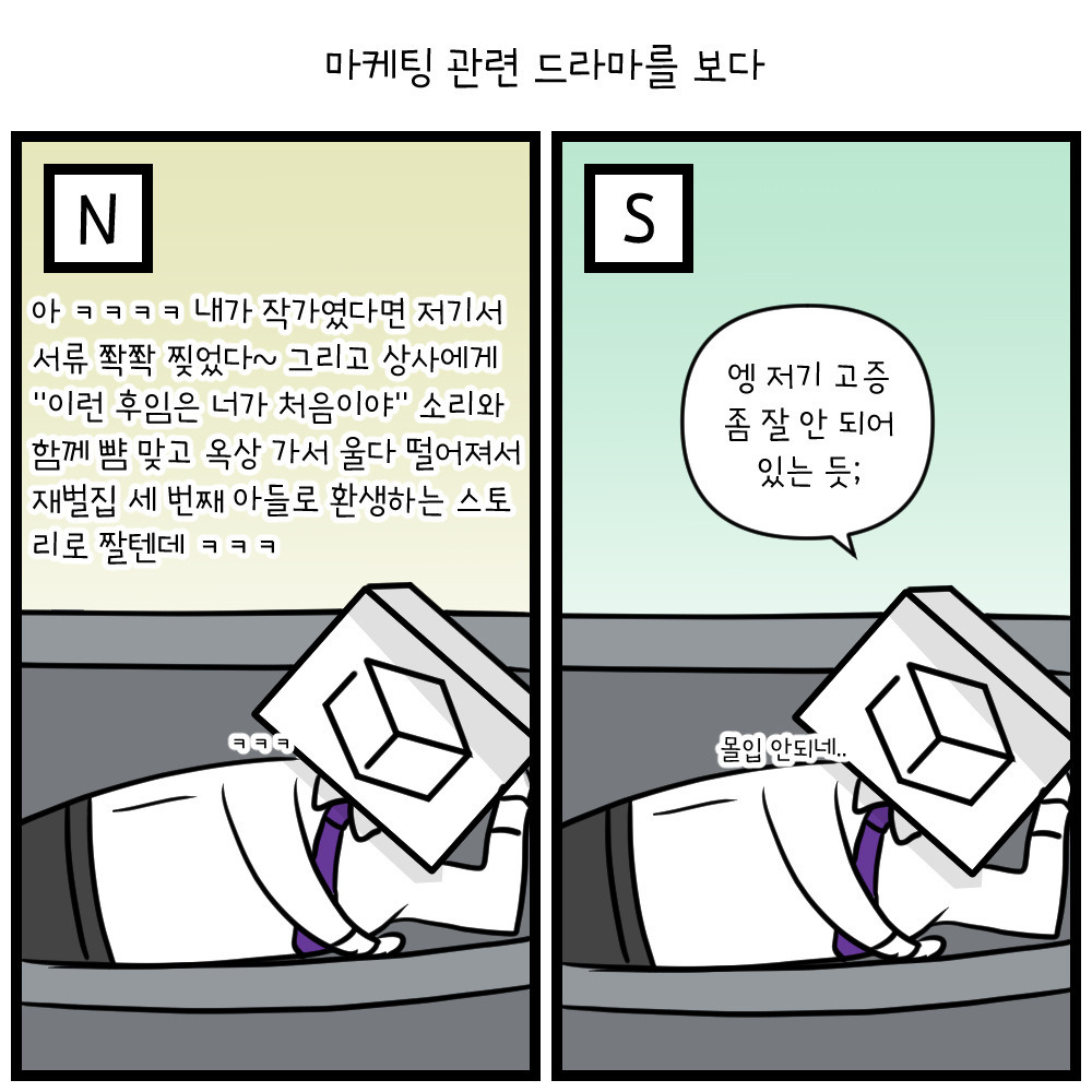 마지막으로 시제에 관한 부분이다. N의 경우 미래에 대한 초점이 우선적으로 맞춰져있고, S의 경우 과거부터 현재까지의 시점을 더 중요시한다. 그러다보니 과거로부터의 이야기나 누적된 경험을 통해 순차적인 결론을 내리는 S의 이야기가 더 듣기 편하고 당위성을 확보할 확률이 높다.