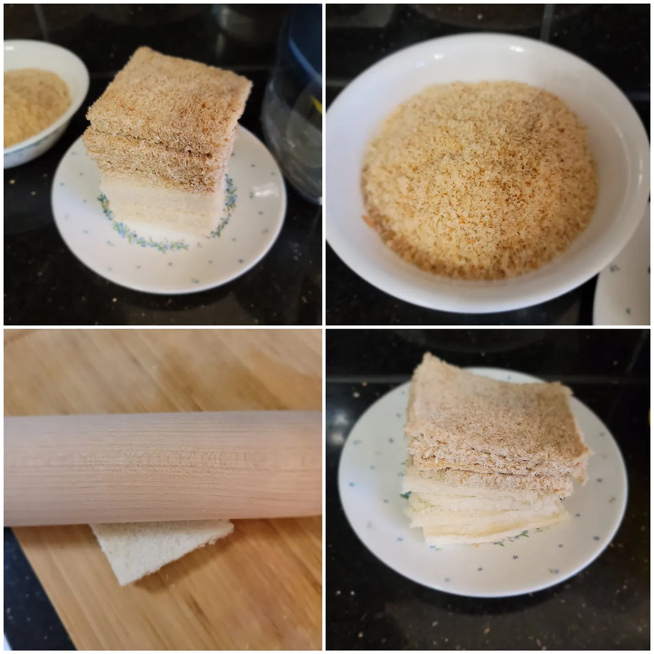 요즘은 세상이 좋아 유튜브에 에어프라이어 요리만 치면 다양한 요리가 나온다. 우선 집에 있는 식빵으로 핫도그를 만들어주었다. 만들어놓은 것들도 많이 팔긴 하지만 직접 해주고 싶었다. 빵 테두리를 잘라서 빵가루를 만들고 식빵의 중간은 밀대로 밀어 납작하게 만든다. 그