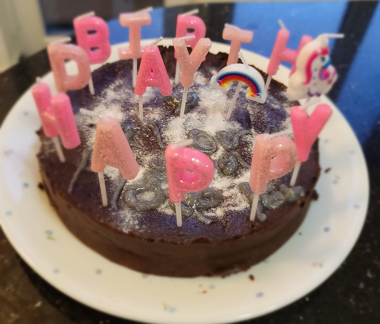 사실 초콜릿은 언제나 맛있다. 문제는 내가 만든 케이크는 작은데 내가 유니콘 촛불이 예뻐서 1유로 마트에서 그걸 샀더니 케이크를 초가 다 덮었다. 불을 하나하나 붙이다 보니 케이크가 다 탈 것만 같았다.