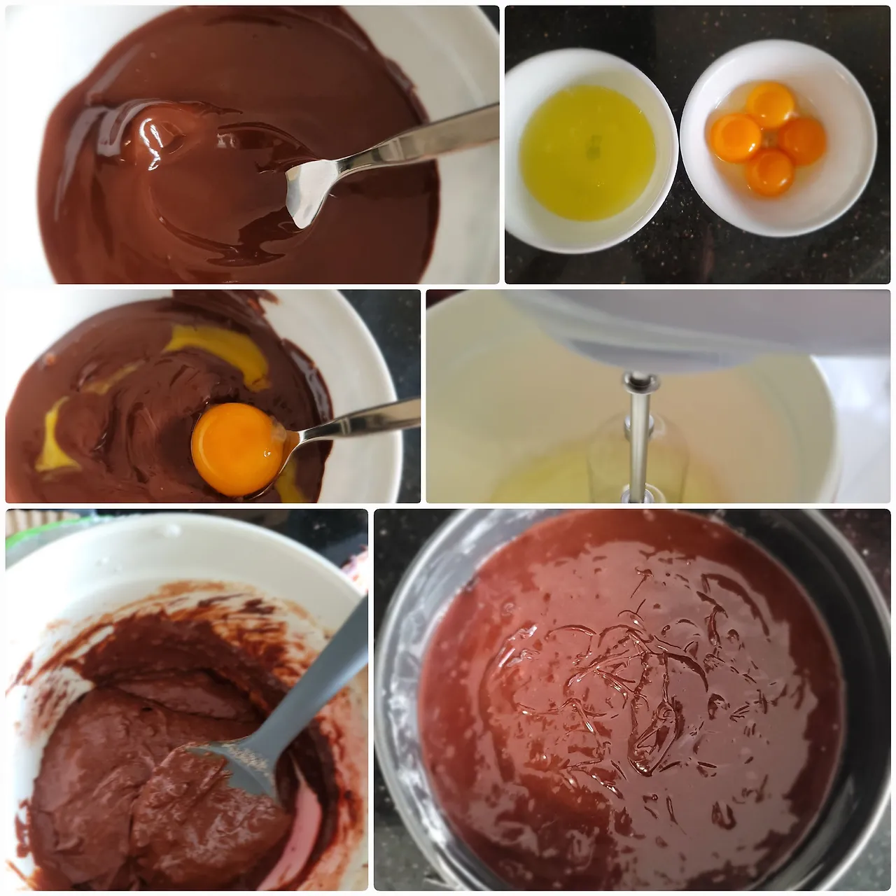 흰자는 거품기로 거품을 만들어주고 노른자는 초콜릿과 섞어 열심히 섞어준다.