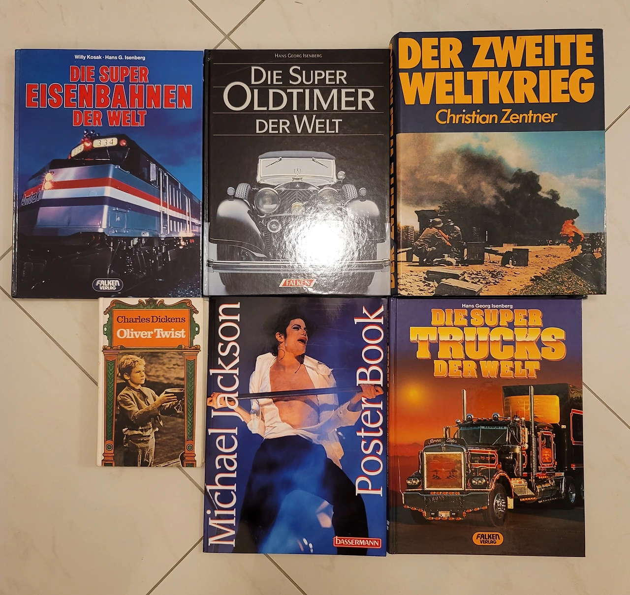요즘 우리 둘째가 아이유를 넘어 마이클 잭슨에 빠져서 마이클 잭슨의 노래를 매일 듣고 있다. 지금 마이클 잭슨의 일대기를 연구 중이다. 둘째의 그런 마음이 통했는지 마이클 잭슨의 옛날 화보집이 독일어로 나와 있었다. 둘째는 이건 사야 한다고 얼른 집었다. 물론 깨알 같은 독일어로 쓰여있는 책들이라 이걸 읽을 줄 알게 될 때는 한국으로 돌아갈 때가 될 것이다. 아님 장식품으로 둘 지도 모른다. 우리는 그 외의 2차 세계대전의 역사, 영국 소설 올리버 트위스트 등 보관해두고 읽으면 좋을 거 같은 책들을 구입하고 우리는 금액을 지불했다. 남편이 지갑에 현금이 더 있으니 기부하자고 이야기를 해서 내가 영어로 이야기를 해달라고 했지만 남편은 나보고 독일어로 하라고 말을 하라고 했다. 나는 속으로 영어로 해주지 하는 마음속의 말과 다르게 또 내 자존심에 나는 돈을 더 꺼내 독일 아저씨에게 Ich werde spenden.(저는 기부하려고 합니다.) 하고 웃으며 공손히 돈을 드렸다. 아는 동사를 급히 조합해서 이야기를 했어도 알아듣고는 독일 아저씨는 고맙다고 이야기를 했다. 나는 Einen schönen Tag.(좋은 날 되세요.)라고 이야기를 하고 나왔다.