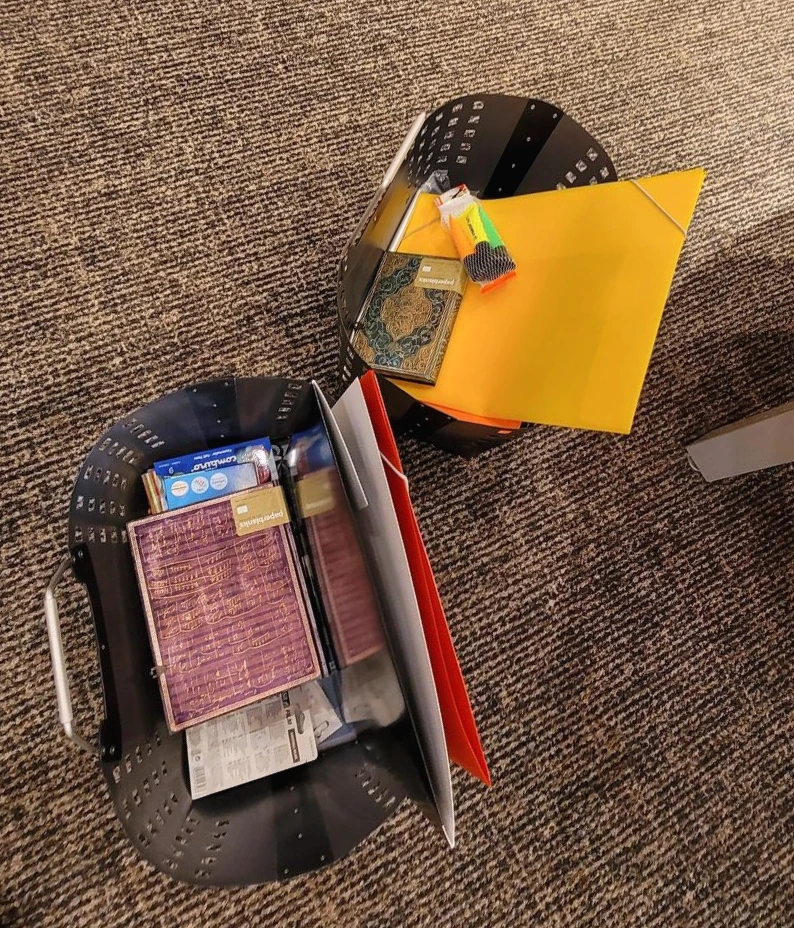 이 두 바구니의 들어있는 문구류가