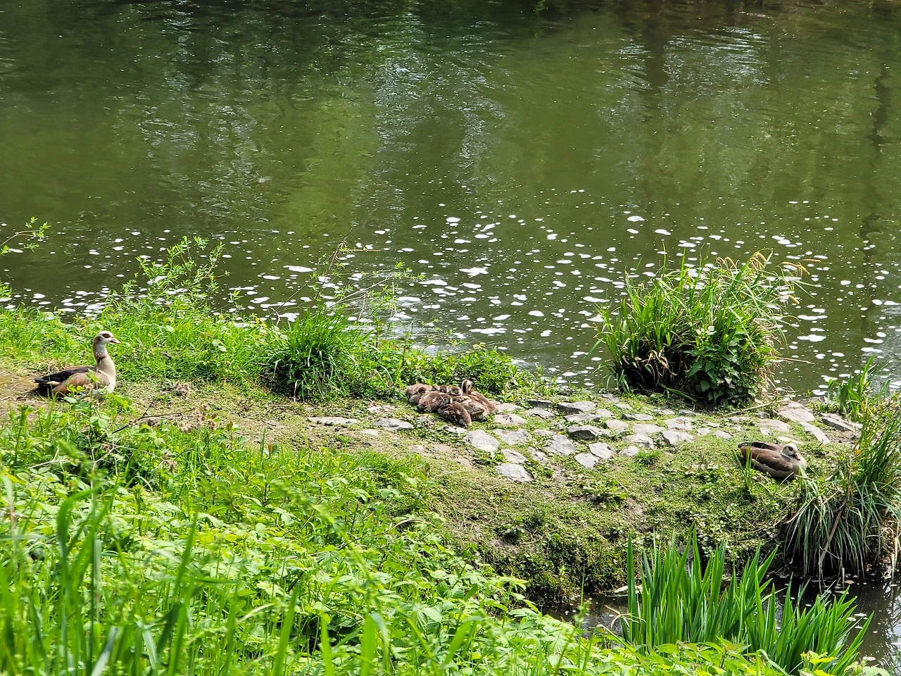 자전거를 타고 가다 새끼를 나서 보호하고 있는 오리 부부를 만났다. 꼭 자전거를 타고 갈 때 우리 부부의 모습이다.