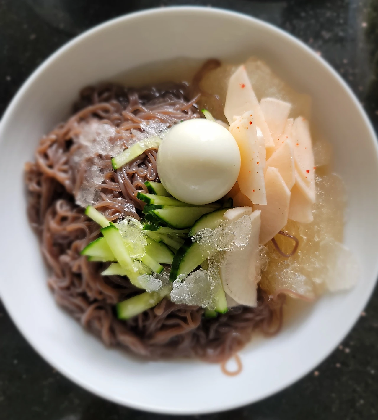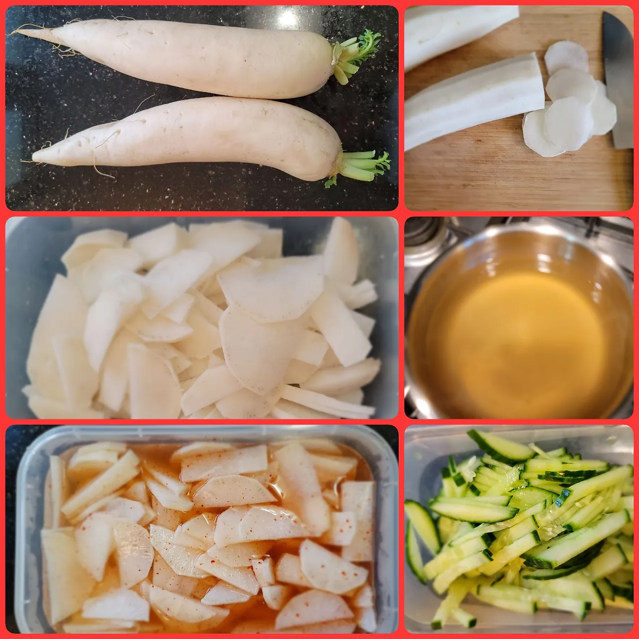 냉면 무도 만들고 오이까지 잘라놨다. 냉면에 진심이다.