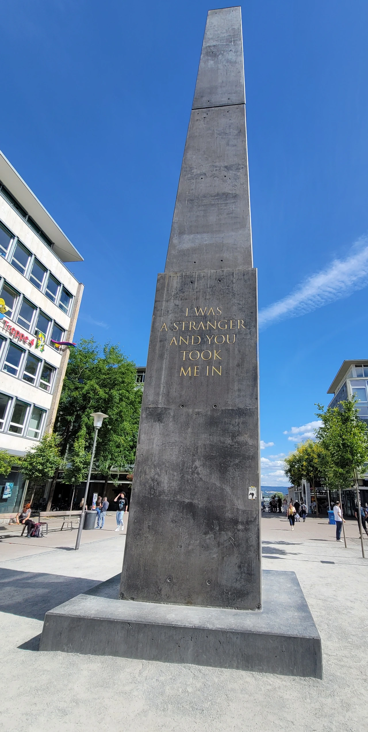 우리는 누구나 이방인이 될 수 있다. 그러나 타인의 따뜻한 배려나 관심도 적응하고 변화할 수 있다. 나는 남편과 아이들과 이 글을 읽고 걸어오면서 글이 너무 따뜻하다고 이야기를 했다. 우리는 누구나 이방인이 될 수도 있고 주변에서 이방인을 만날 수 있지만 상대방에 대한 따뜻한 배려를 가지는 사람이 돼야 한다고 심오 있는 이야기를 했다. 비록 현대미술 전시는 못 봤지만 큰 울림을 주는 탑을 보고 와서 기분이 따뜻했다. 아마 내가 아직 독일 사회에서 이방인이기 때문인 거 같다.