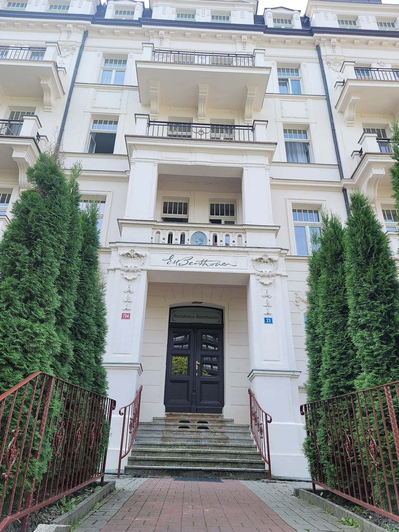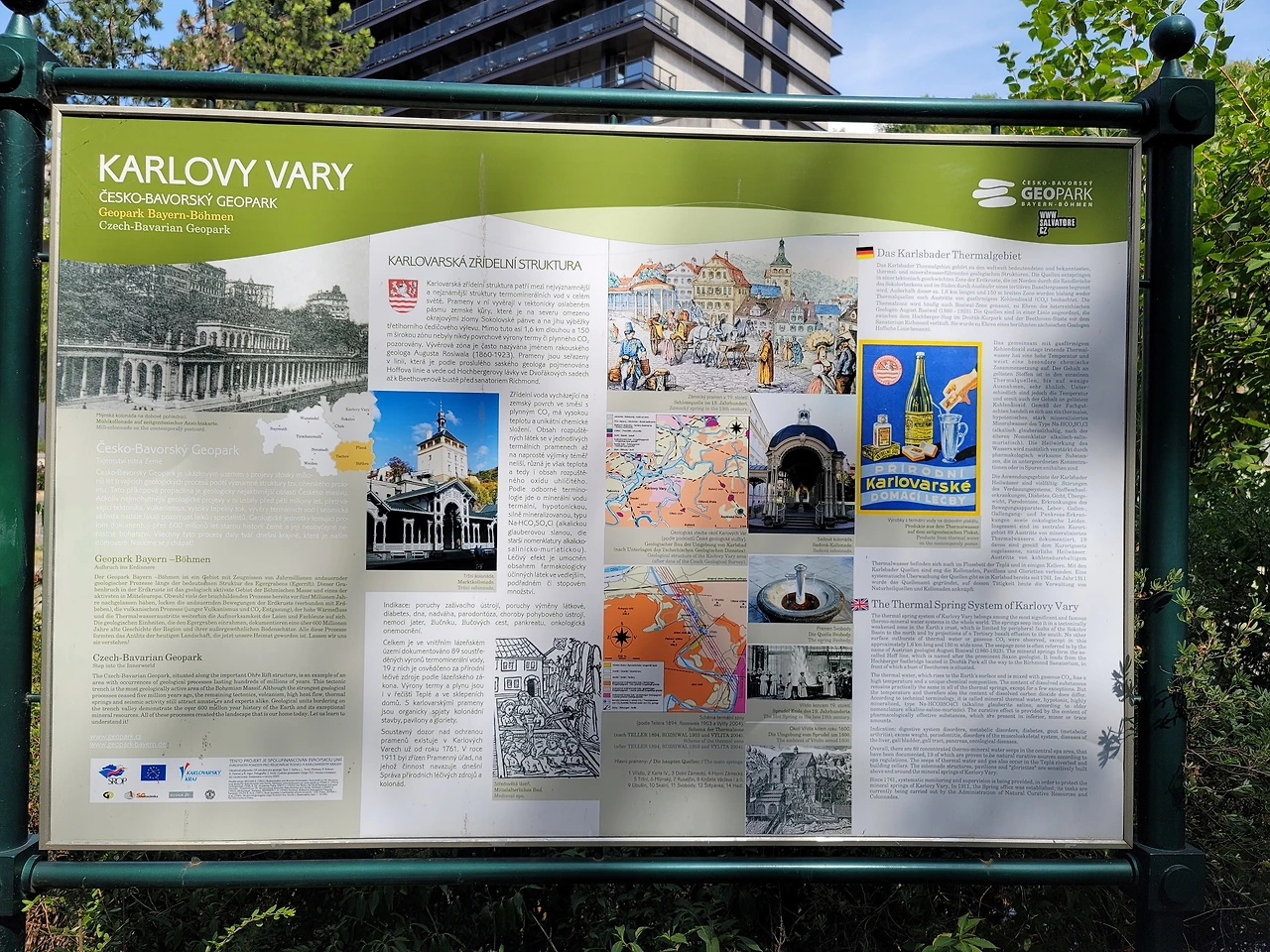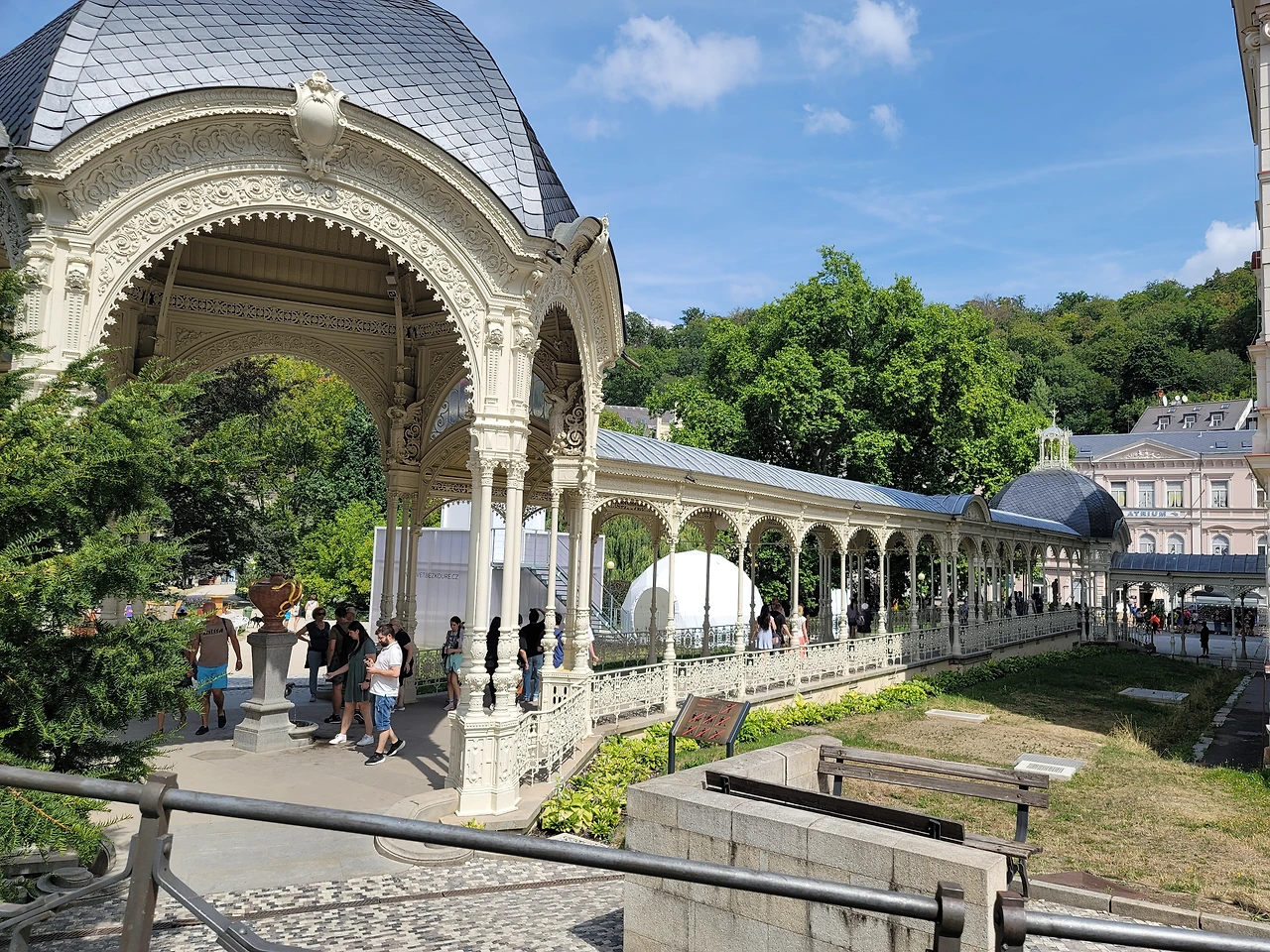 독일의 문호가 쾨테의 동상과 베토벤의 이름의 건물이 있다. 카를로비바리는 괴테와 베토벤이 함께 온천수를 마시며 산책을 하면서 예술을 논했던 곳으로 유명하다. 그래서 괴테의 동상과 베토벤 이름의 건물이 있다. 쇼팽도 이 길을 따라 온천수를 마시며 폐병을 치유했다고 한다. 그만큼 물의 효능이 좋은 곳으로 유명하다. 중간에 물을 큰 물통에 담아 갈 수 있도록 한 우리나라에서 약수터도 있었다.