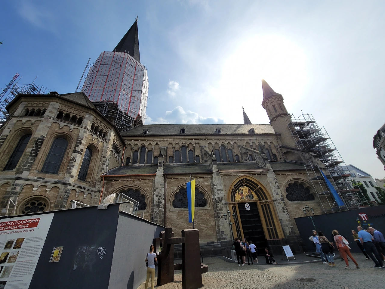 점심도 먹고 우리는 본의 중심부에 위치한 뮌스터 대성당을 보러 출발했다. 뮌스터 대성당에서 기독교의 순교자들이 1350년 동안 이곳에서 숭배되었다고 한다. 이 성당은 11~13세기 동안 지어졌으며 로마네스크 양식과 고딕 양식의 요소가 섞여 지어진 성당이다.