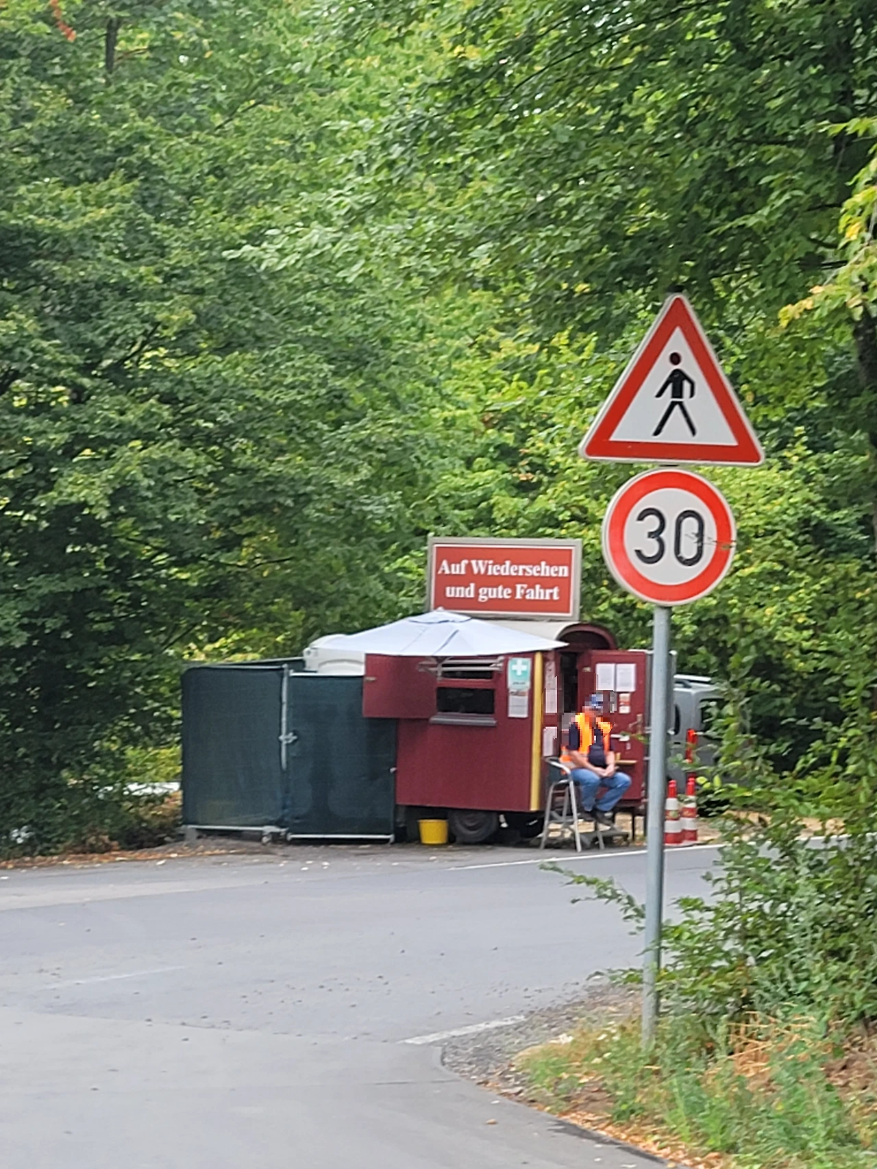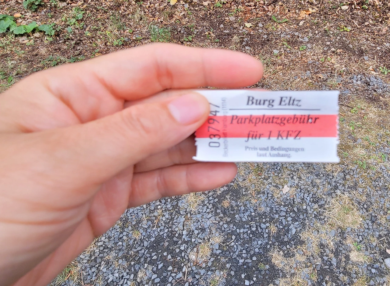 우리는 엘츠 성 주차장에 차를 대고 걸어서 올라가기로 했다. 주차장 입구에 들어서니 주차장 할아버지가 일어서서 4유로라고 이야기를 했다. 그리고 티켓을 주고 쭉 앞으로 가라고 했다. 우리 말고도 이미 많은 사람들이 주차를 하고 올라가고 있었다. 성 입구까지 올라가는 버스가 있어 버스를 탑승하는 사람들도 있었다.