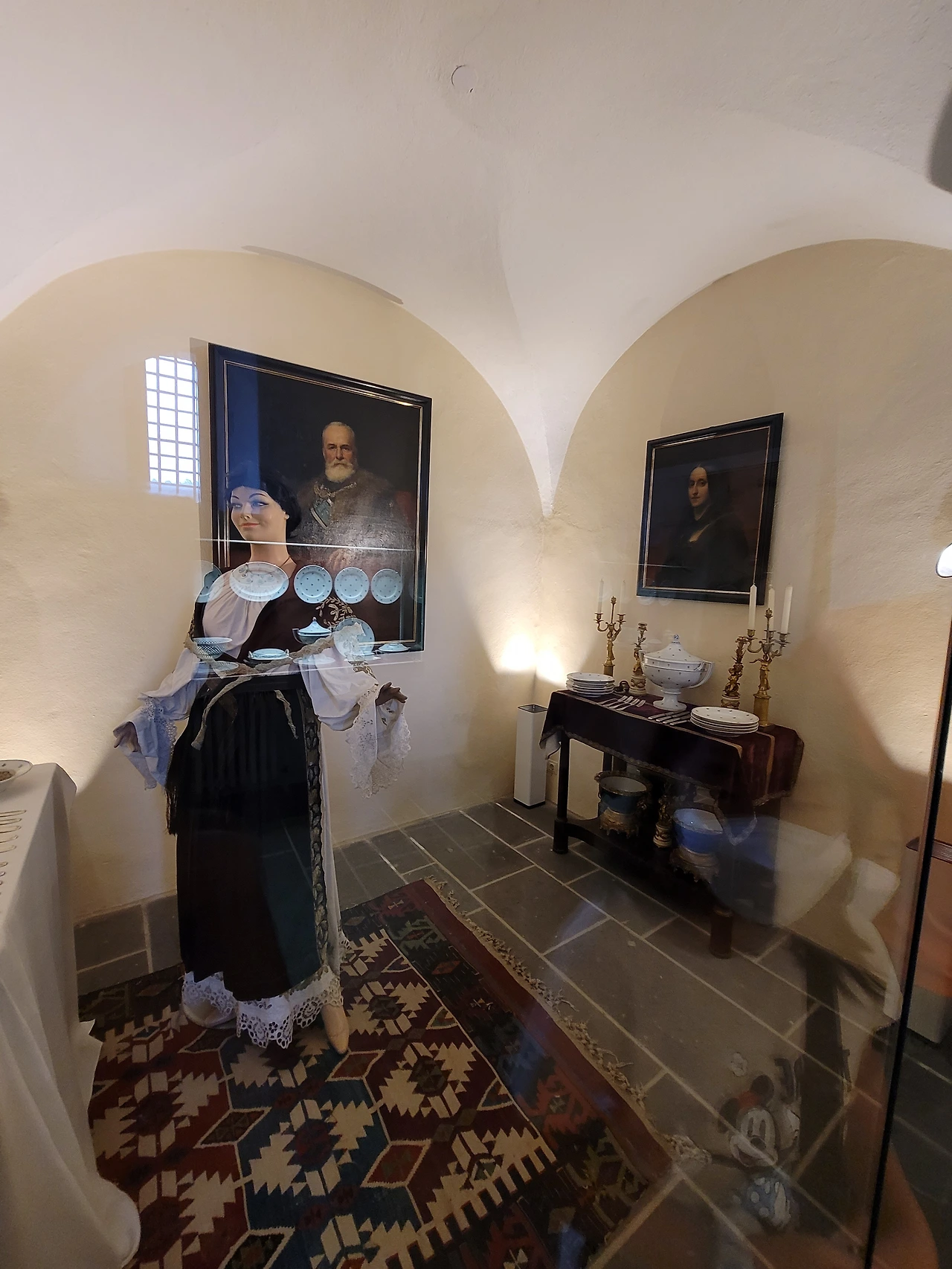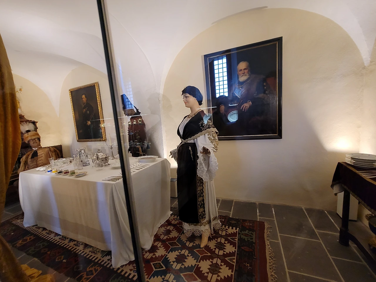 들어가자 마다 또 엄청난 무기들이 많았다. 외부의 침략으로부터 집안을 지키기 위함이 보였다. 생선 뼈로 만든 칼도 있었다. 방들을 하나씩 이어지고 좁은 계단으로도 올라가야 하고 내려가기도 했다. 아이들을 위한 방, 침실, 부엌 등을 구경하였는데 방마다 화장실이 있었다. 곳곳에 예수님 그림이 걸려있었으며 창문 이 유리로 되어 있었는데 통 창문이 아니었고 유리병 아래의 동그란 부분을 붙여 만든 창문이었다. 그때는 이 기술만 있었다고 한다. 창문이 깨지지 말라고 창문 문틀마다 장치도 있었고 굉장히 섬세했다.