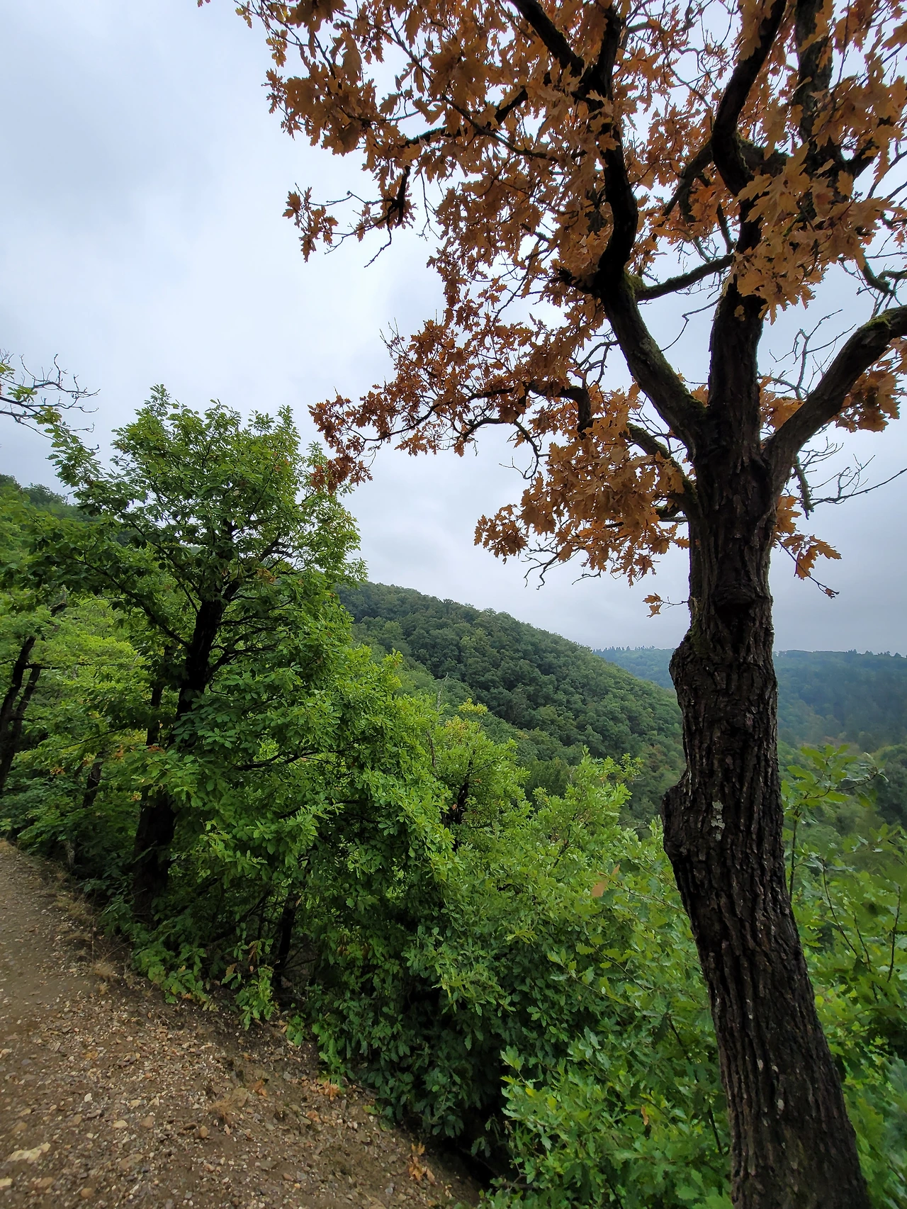 엘츠 성까지 15분 거리라고 하니 남편은 큰 애랑 빠른 걸음으로 성으로 출발했고, 나는 둘째와 손을 잡고 걸으며 끝말잇기를 하기도 하고 사진도 찍으며 천천히 걸어갔다. 예쁜 열매들도 많았고 나무들도 오랜 세월 이 자리를 지키고 있어서 그런지 굉장히 컸다.