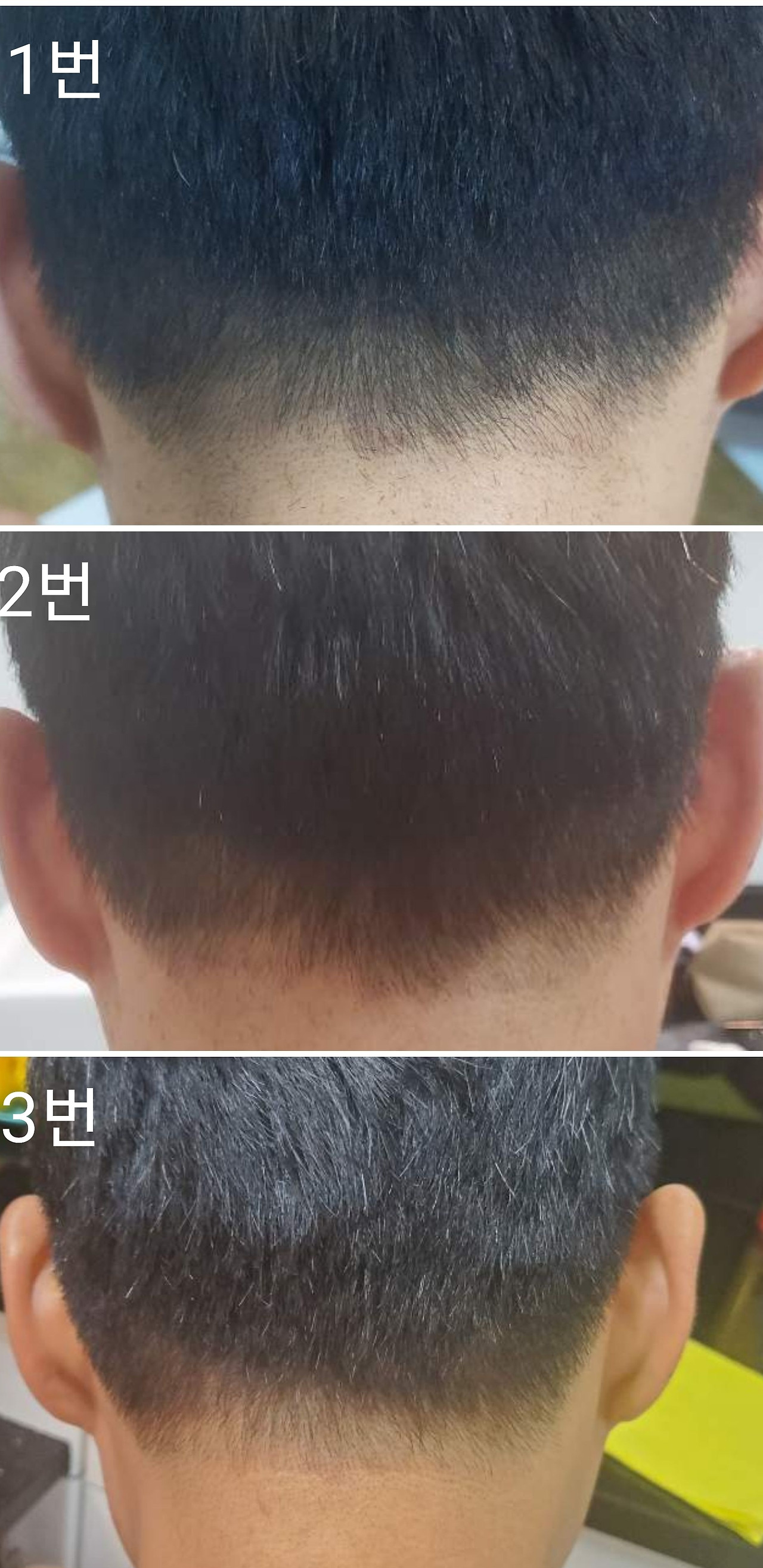 옆머리는 어떻게 본인이 자른다지만 문제는 뒷머리였다. 한 달 뒤 남편은 항상 맥가이버가 되어있었다. 음.. 너무 고전 인물이니 김병지의 꽁지머리로 해야겠다.. 아.. 그것도 그의 2002년 스타일이니 지금은 역사 속으로 사라진 스타일이다. 남편은 나에게 이발 기기를 맡겼다. 역시 기계는 정확하고 날카로웠다. 올라가는 족족 기계 자국이 남았다. 남편이 한숨으로 시작하여 눈을 감기 시작했다. 눈물이 나는지 흐느끼고 있었다. 1번 사진처럼 되는 순간 그는 더 이상 여기서 살 자신이 없다고 했다. 급하게 유2브를 틀었다. 다양한 방송에서 남자 머리 자르는 법을 알려주고 있었다. 따라 하려 노력했다. 그리고 드디어 2번 사진까지 왔다. 남편이 희망을 찾았다. 포기하지 않았다. 조금씩 조금씩 자신 있는 스냅으로 더 올려쳤다. 드디어 3번까지 도착했다. 남편이 스톱을 외쳤다. 여기까지 하자. 이 정도면 회사는 간다... 나는 눈물이 났다. 약간 삐뚤어졌지만 관심 갖지 않는다면 아무도 모를 것이다.