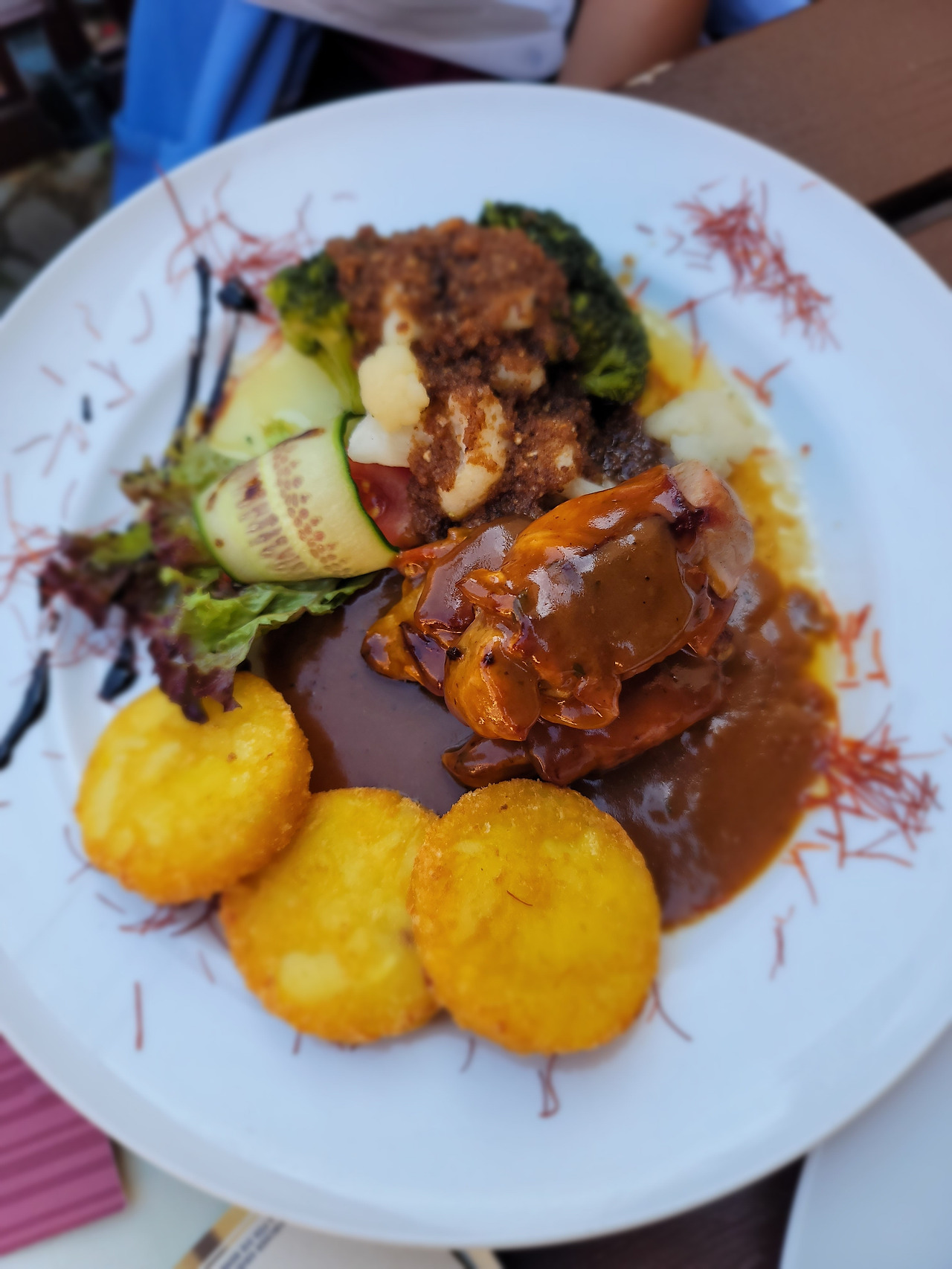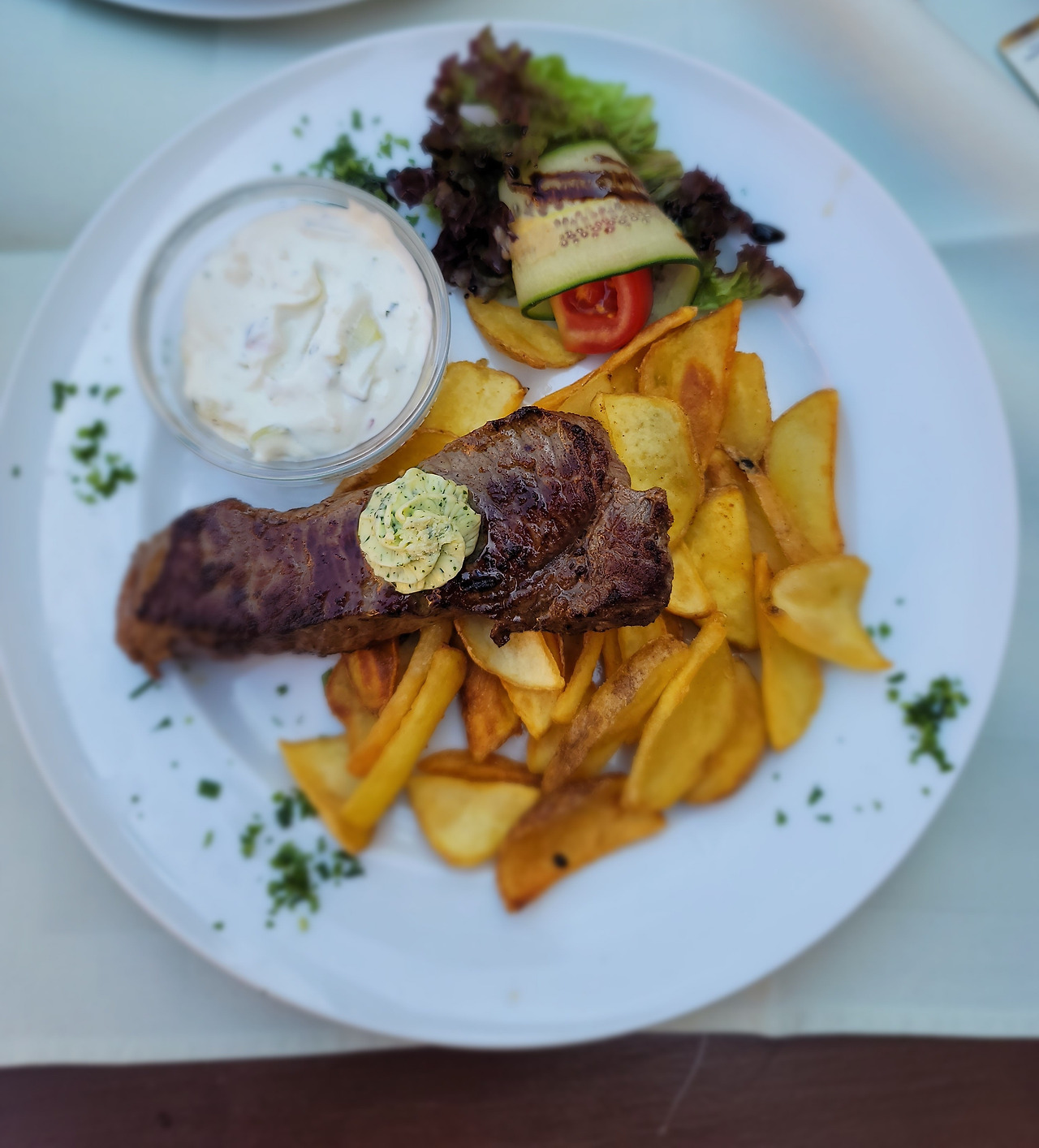 우리 가족은 밖에 자리를 잡아먹고 있는데 오토바이 부대들이 계속 지나갔다. 그리고 한 오토바이 부대가 내렸는데 이번에 독일 할아버지 오토바이 부대였다. 오토바이에서 멋지게 가죽재킷을 벗고 헬멧을 벗고 식당으로 들어가셨다. 나이가 들어도 저렇게 취미활동을 할 수 있을 수 있으면 멋진 인생일 거 같다는 생각이 들었다.