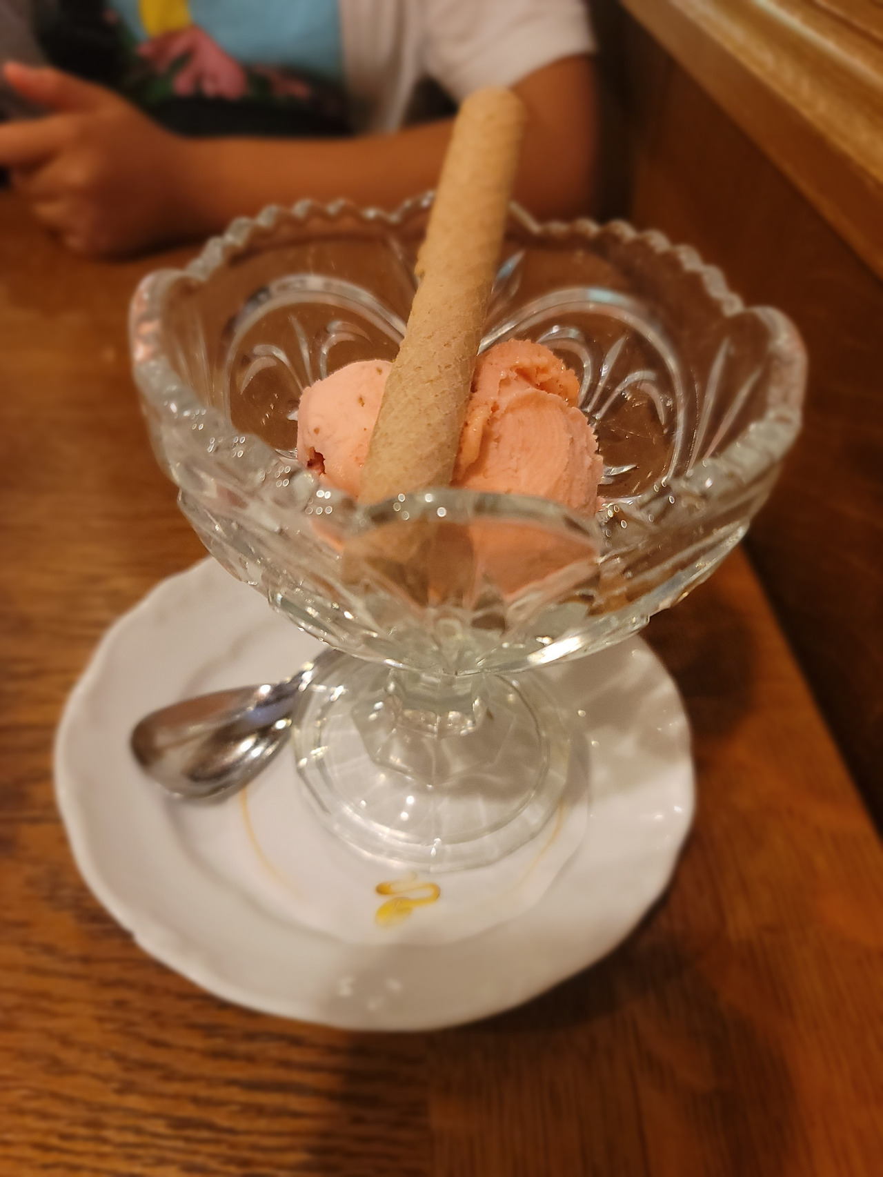 우리가 들어간 Friwi Konditorei und Café 는 15세기의 유서 깊은 골조 집에 있는 카페였다. 이 카페는 130년 된 카페로 장식품도 고전적이고 너무 예뻤다. 사람들도 많았다. 직접 전통적인 조리법에 따라 집에서 구운 케이크가 있었으며 정말 맛있었다. 아이스크림도 직접 만들어서 파는데 딸기를 좋아하는 큰 애는 딸기 아이스크림을 골랐다.