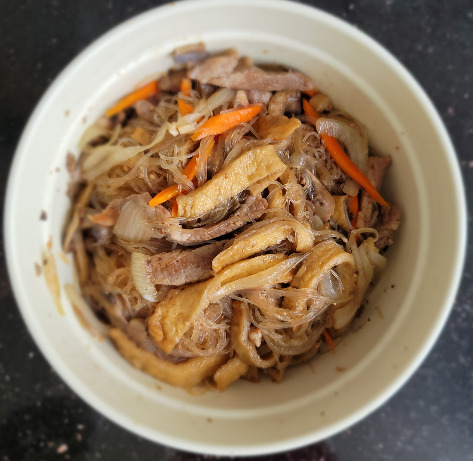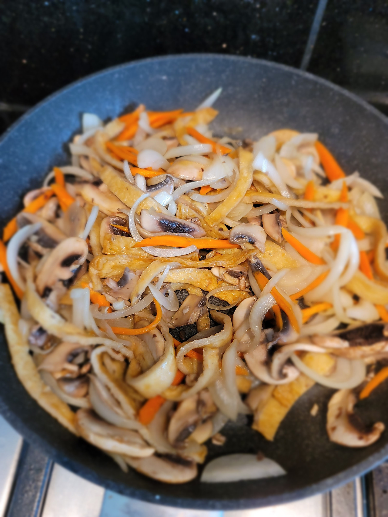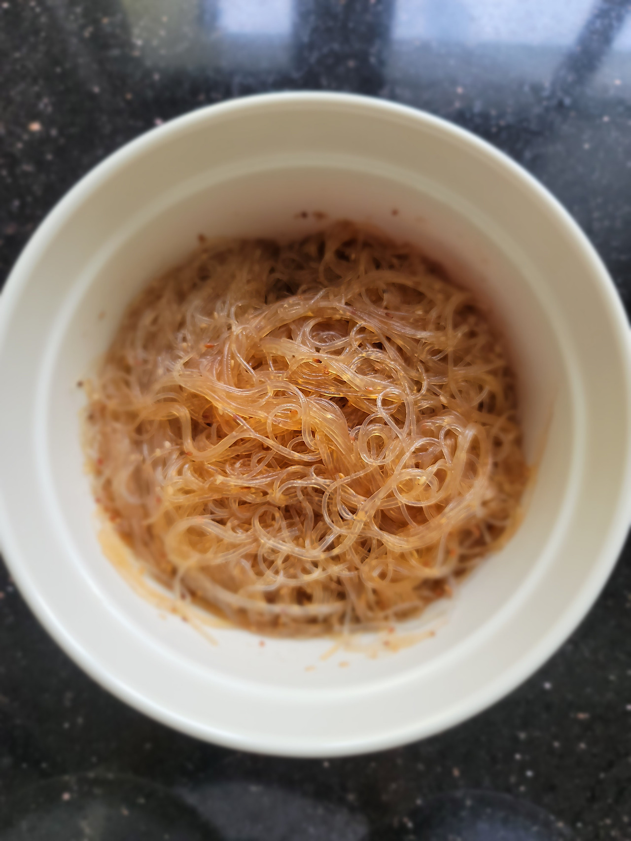 잡채를 추석에 먹은 기억은 없다. 근데 그냥 했다. 동그랑땡과 고깃국만 하고 밑반찬만 주기에는 그래도 추석인데 가족에게 미안했다. 이번 주가 추석인지 알았는지 독일 마트에서 당면 비슷한 면이 세일을 해서 샀다. 잡채는 남편도 좋아하고 아이들도 좋아하는 우리 집 대표 음식이다. 고기와 당근, 어묵, 양파, 버섯을 듬뿍 넣어 면과 함께 버무리니 맛있는 잡채가 완성되었다.