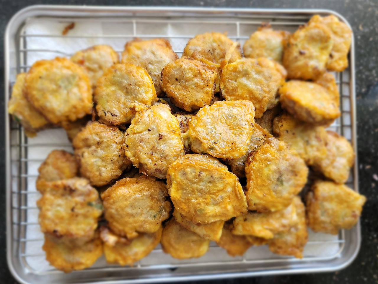 한국에서 추석이나 설에 항상 동그랑땡을 시댁에서 했었다. 어머님은 동그랑땡을 크게 하셔서 우리 아이들이 먹을 수 있게 냉동을 해서 필요할 때마다 먹게끔 많이 하시곤 했다. 그동안 전을 부친 실력이 오늘 발휘되었다.