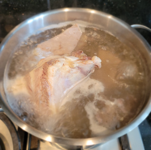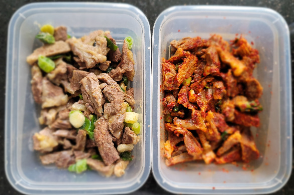 아이들은 고기를 푹 삶은 국에 소금, 후추, 마늘 등을 넣어 양념한 고기에 국을 말아먹는 걸 좋아한다. 2시간 푹 끓이니 맑은 고깃국물이 완성되고 고기도 잘 익어 양념을 하니 맛있었다. 신기한 게 어깨너머로 친정엄마가 하시던 걸 보고 자란지라 엄마의 요리를 하나씩 하고 있다.