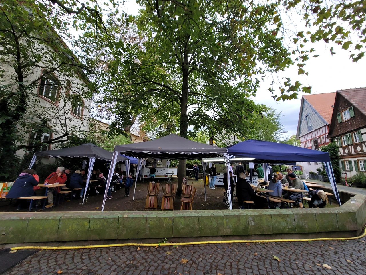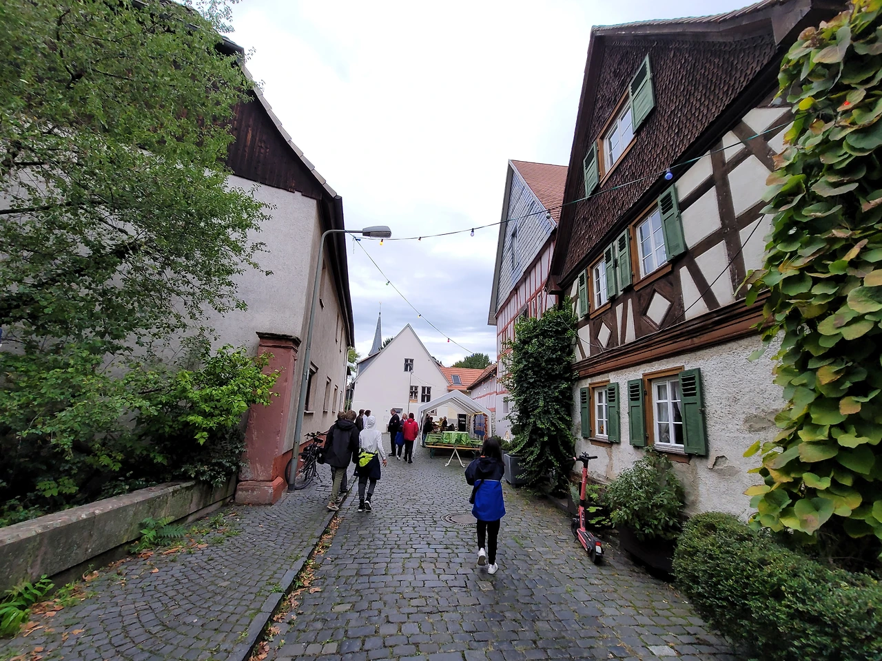 요즘 독일은 비가 계속 내린다. 소나기처럼 많이 내리는 게 아니라 조금씩 조금씩 내리다 말다를 반복한다. 우리 가족은 비가 그친 일요일 오후에 자전거를 타고 축제를 하는 곳으로 향했다. 축제가 크지 않고 동네 안에서 이루어지다 보니 조용히 이루어졌다. 멀리서 보면 이런 행사를 하고 있는지 모르고 지나갈 수 있다.