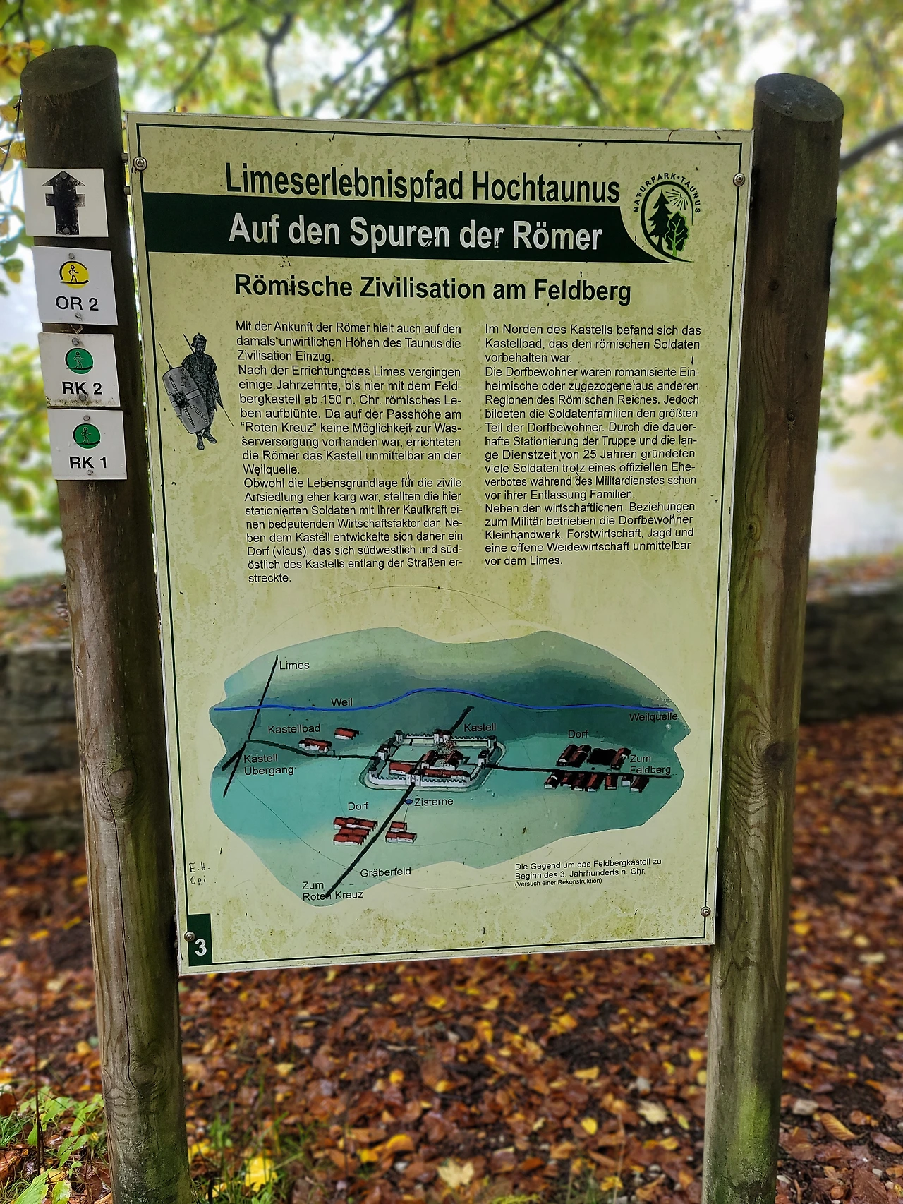 정상을 향해 한참을 걷다 보면 Limeserlebnispfad Hochtaunus의 안내 표시가 나온다. 옛날 로마시대 이 지역을 어떻게 사용했는지 나온다. 독일이나 유럽을 다녀보면 로마의 흔적이 없었던 곳이 없었다는 걸 다시 한 번 느낀다.