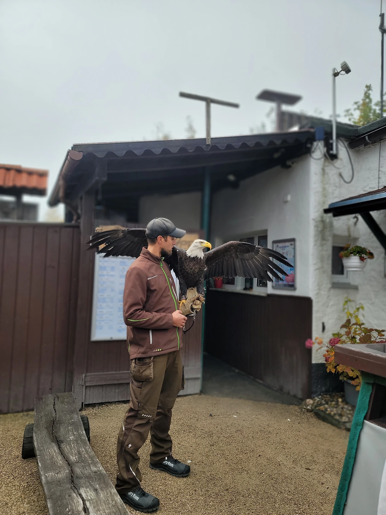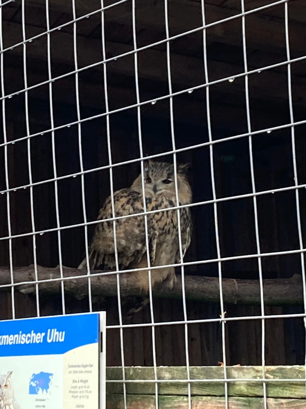 우리가 한참을 숲 속 길을 따라 올라가다 보니 Falkenhof가 나왔다. Falkenhof 안에는 여러 종류의 맹금류와 올빼미가 있었다. Falkenhof은 자연에서 위험한 상황에 발견된 새들을 데리고 와서 사육장에서 보호했다가 90%를 자연으로 돌려주는 보호소 같은 곳이다. 사육사가 멋진 포즈로 독수리를 옆에 두고 나를 포함한 다른 독일인들에게 설명을 해줬다. 물론 다 알아들을 수는 없었지만 그래도 계속 서서 들었다.