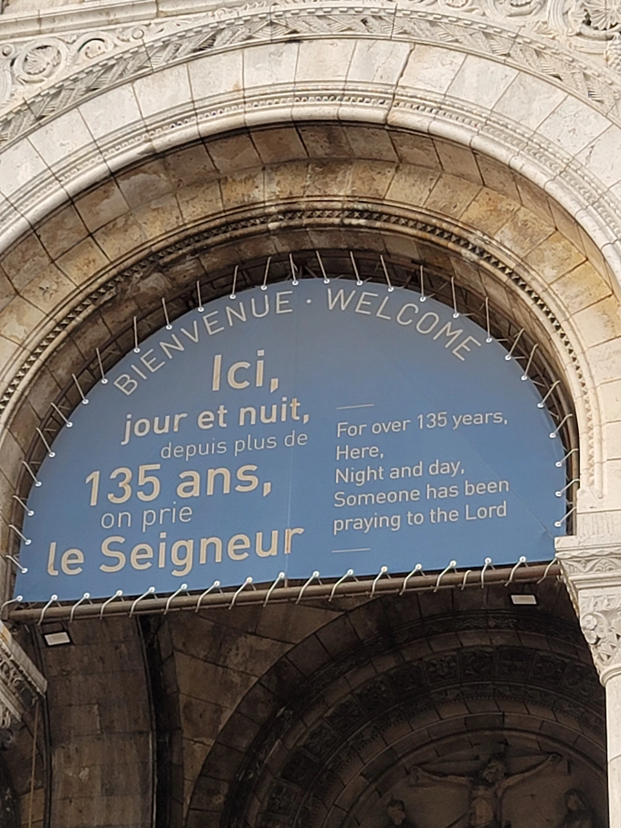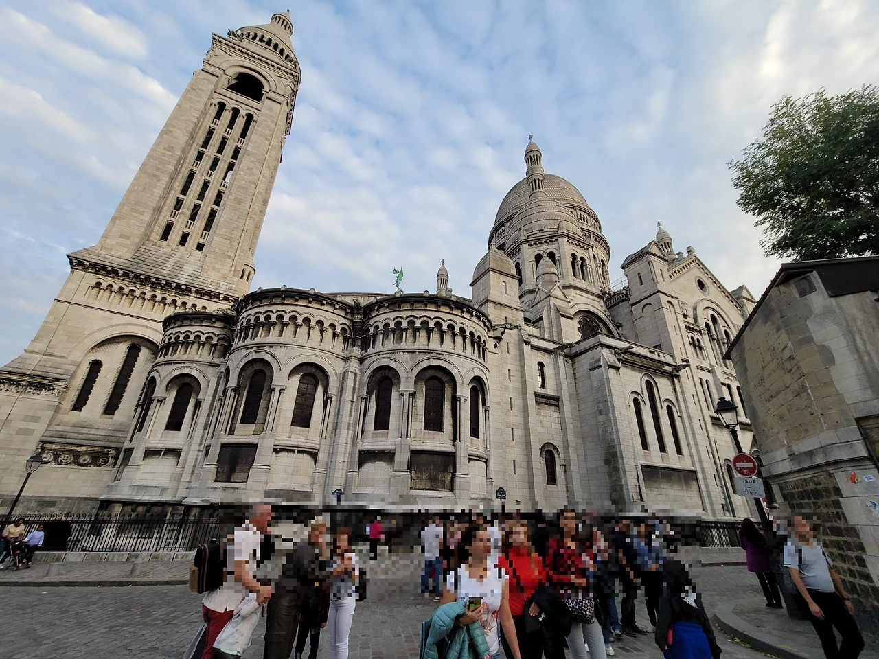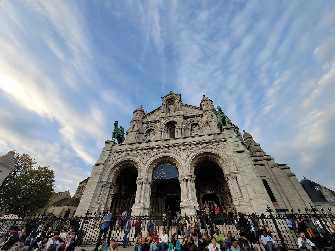 사랑의 벽을 지나 조금 걸어가면 사크레쾨르 대성당이 나온다. 사크레쾨르 대성당은 프랑스파리의 몽마르트르 언덕 위에 있는 대성당이다. 프랑스가 프로이센과의 전쟁에서 패한 뒤 침체된 국민의 사기를 올릴 목적으로 모금한 돈으로 만들어졌다고 한다. 성당 앞에 잔 다르크의 동상이 있고 비잔틴 양식으로 하얀 돔이 우아한 자태로 솟아 있는 모습이 무척 아름답다. 성당 앞에 앉아서 바라보는 프랑스 파리의 모습도 너무 예뻤다.
