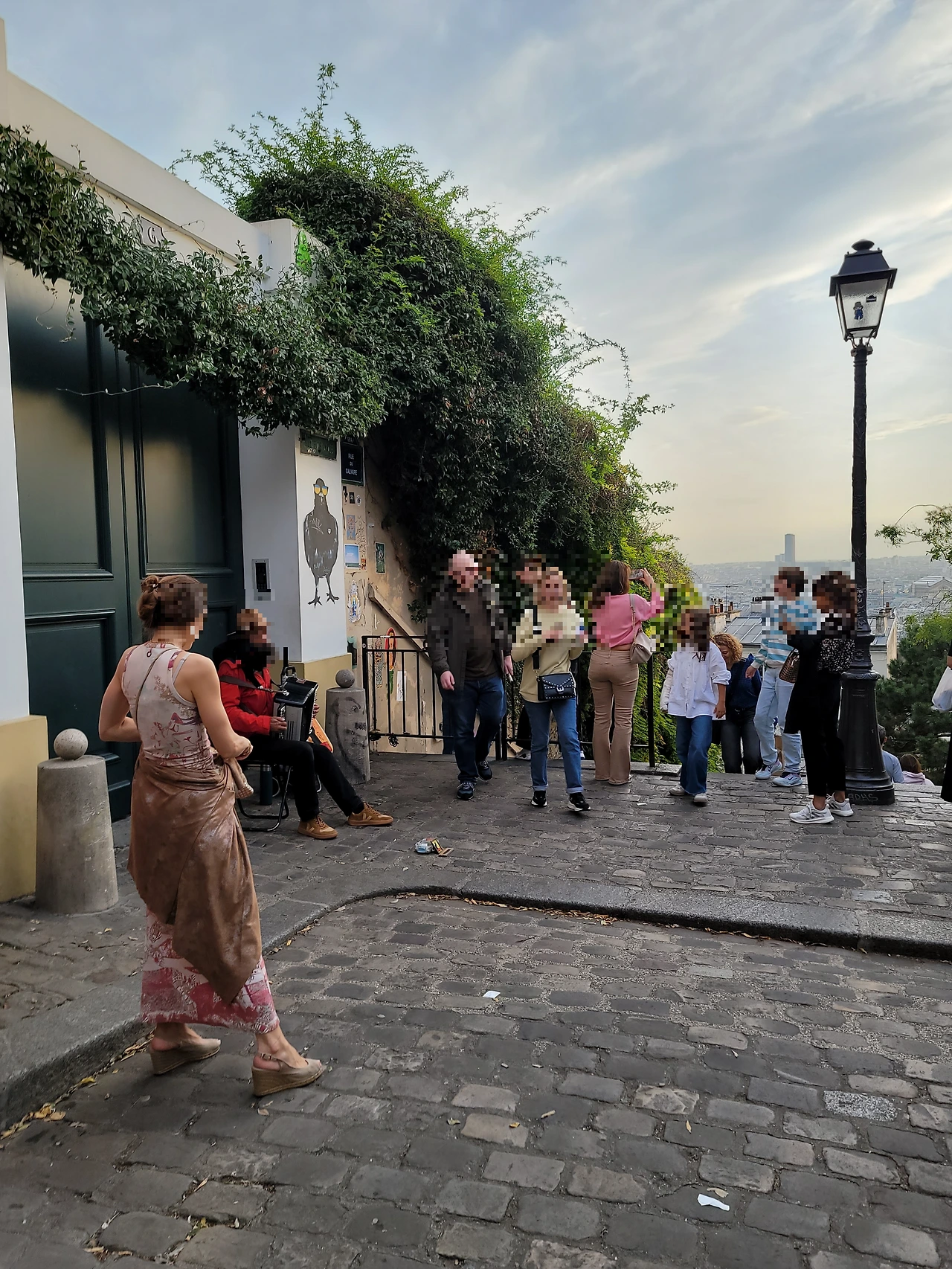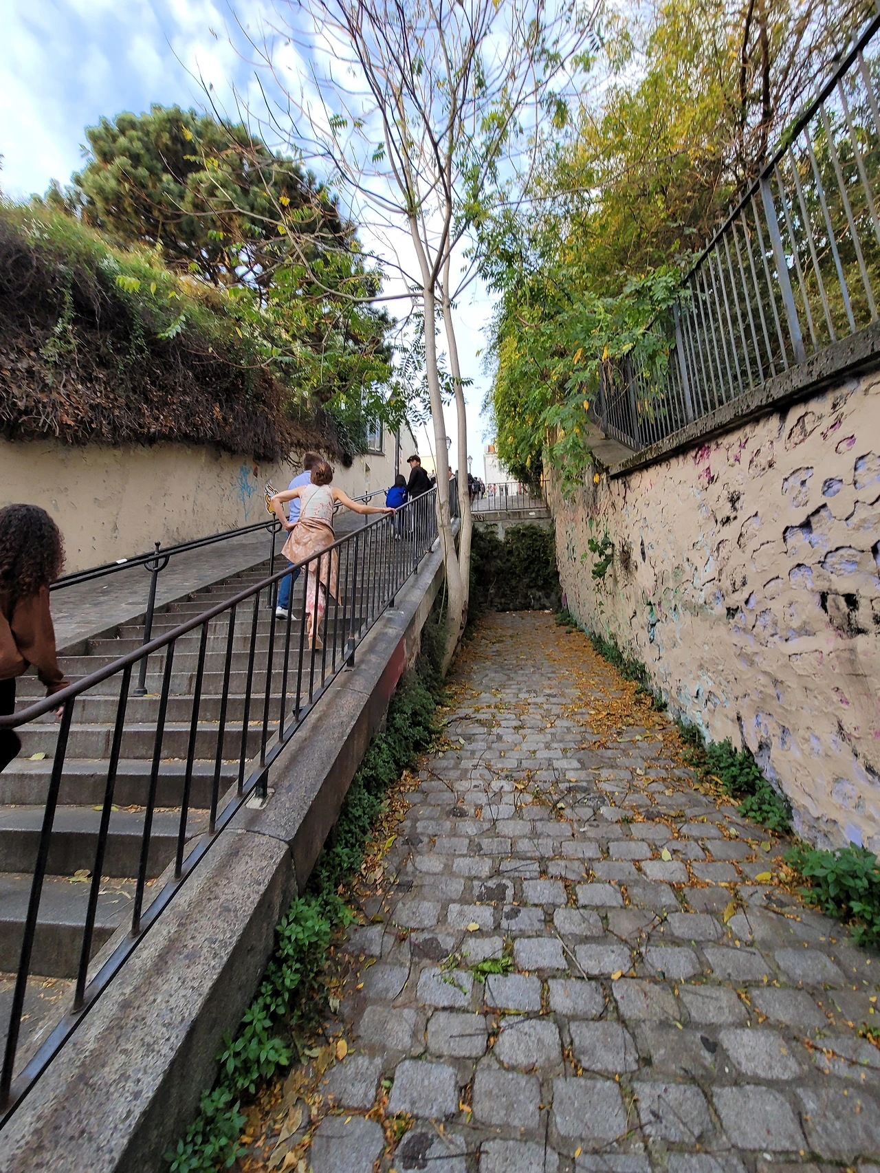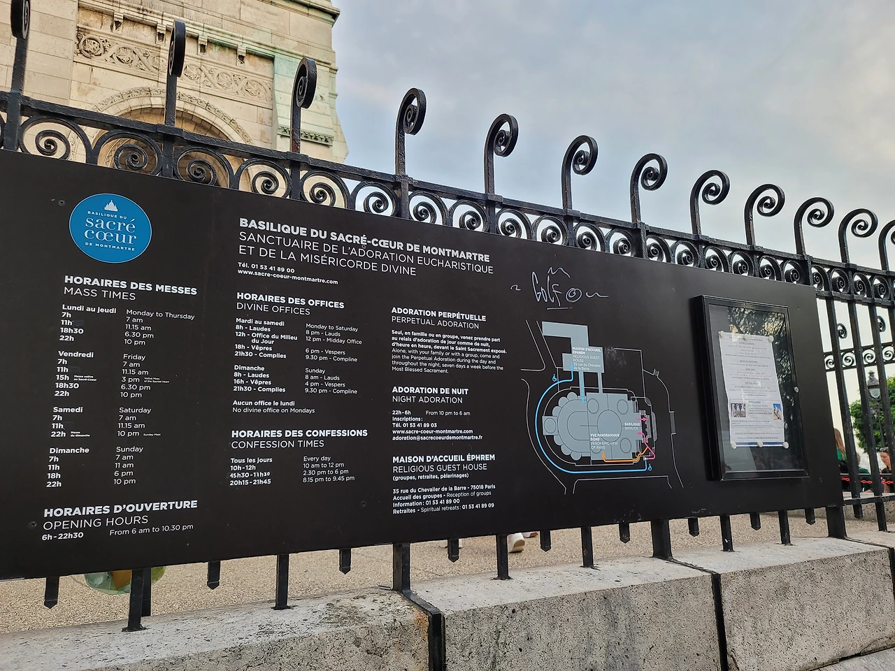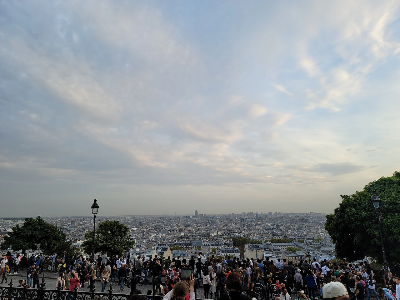 사랑의 벽을 지나 조금 걸어가면 사크레쾨르 대성당이 나온다. 사크레쾨르 대성당은 프랑스파리의 몽마르트르 언덕 위에 있는 대성당이다. 프랑스가 프로이센과의 전쟁에서 패한 뒤 침체된 국민의 사기를 올릴 목적으로 모금한 돈으로 만들어졌다고 한다. 성당 앞에 잔 다르크의 동상이 있고 비잔틴 양식으로 하얀 돔이 우아한 자태로 솟아 있는 모습이 무척 아름답다. 성당 앞에 앉아서 바라보는 프랑스 파리의 모습도 너무 예뻤다.