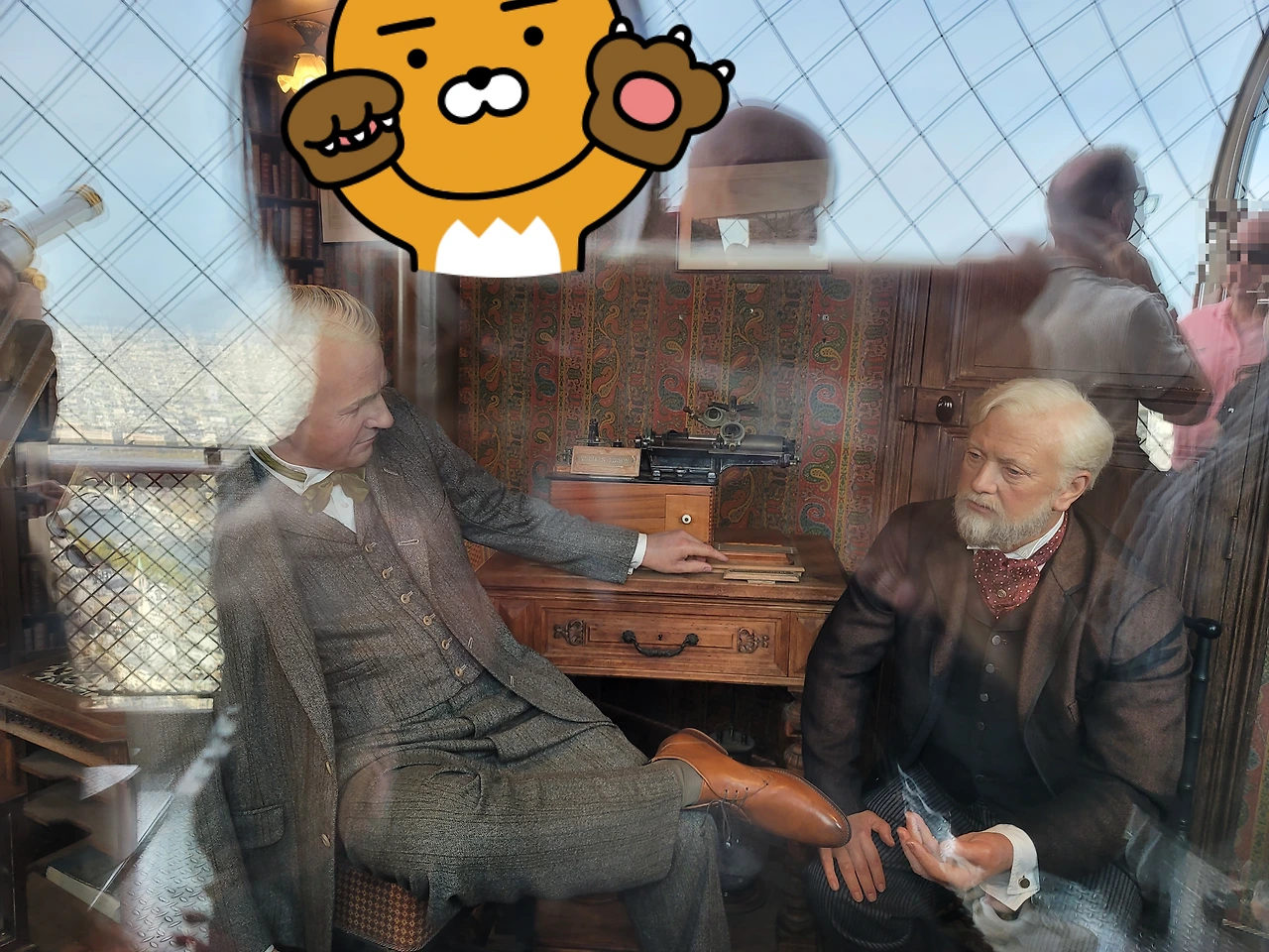 에펠의 모습과 그 당시 에펠탑을 구경하러 온 셰계 정상들