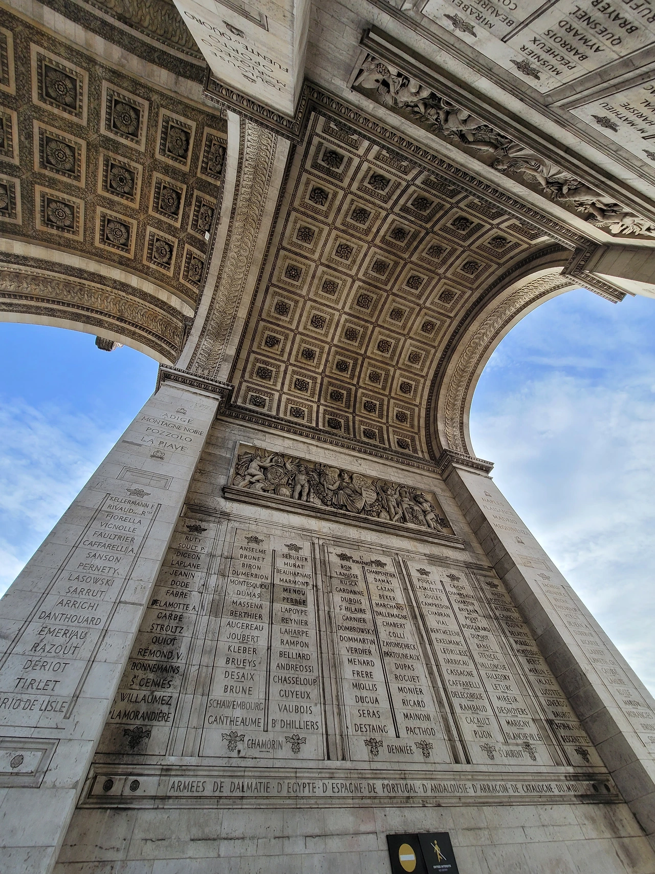 에투알 개선문은 프랑스샤를 드골 광장 한복판에 위치한 거대한 개선문이다. 에투알 개선문은 나폴레옹이 프랑스혁명과나폴레옹 전쟁에서 죽은 전사자들을 기리기 위하여 세워졌으며, 개선문 아래에는 당시 전쟁에서 프랑스가 거둔 모든 승전보들과 지휘관들의 이름이 새겨져 있다. 개선문 아래에는 제1차 세계 대전에서 죽은 이들을 기리는 무명용사들의 무덤이 위치해 있다. 프랑스 대표적은 관광지답게 사람들이 정말 많았다.