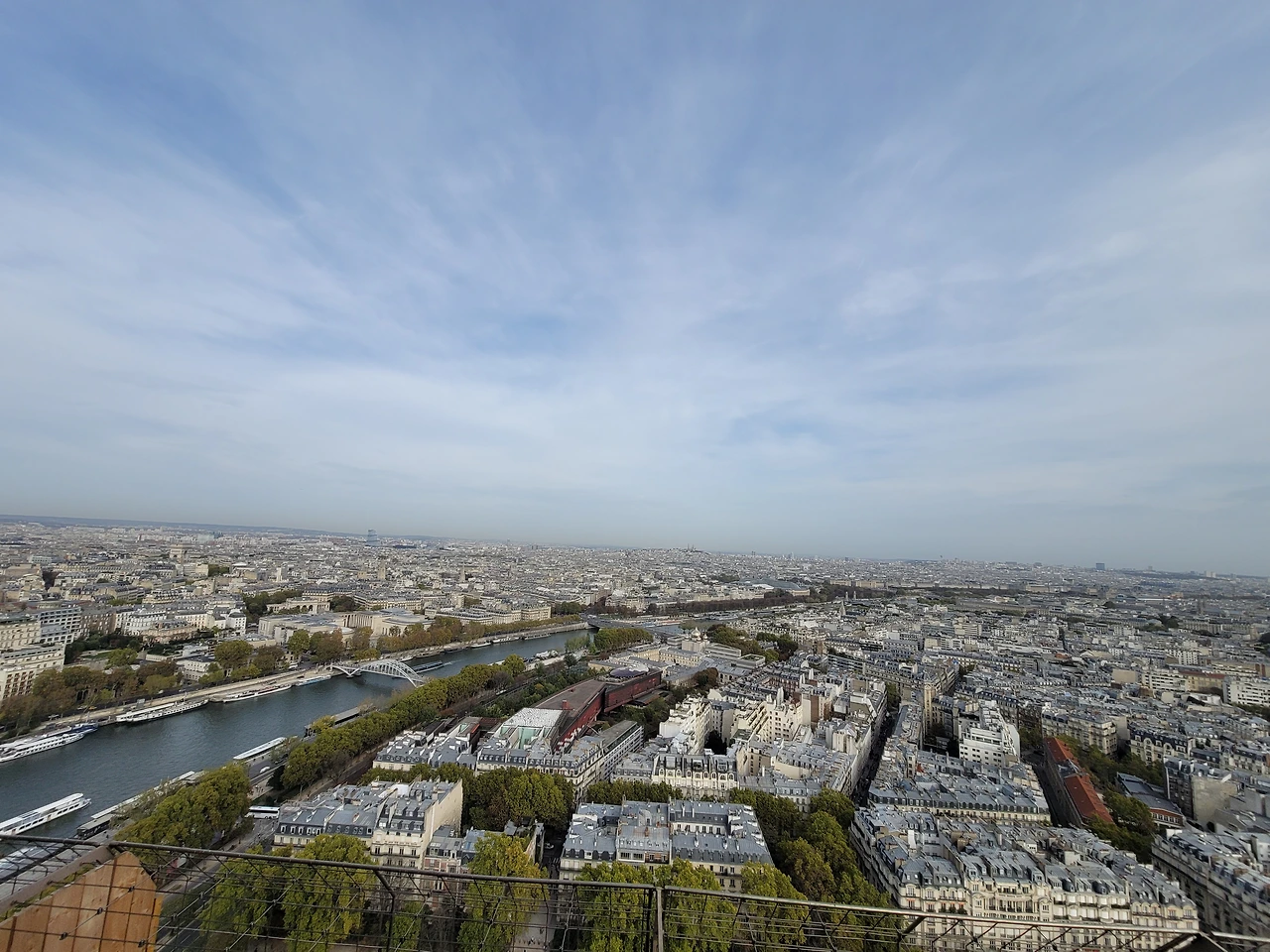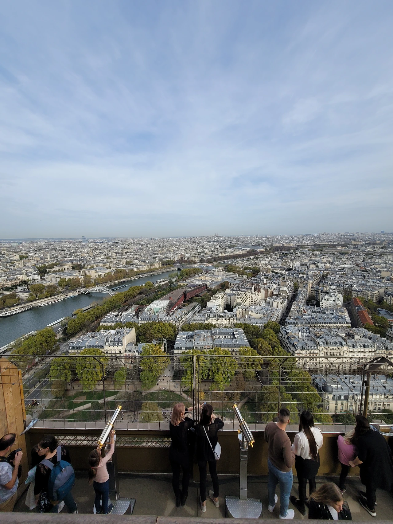 우리는 엘리베이터를 타고 올라갔다. 중간 못되게 올라가서 멈추다가 또 다른 엘리베이터로 갈아타서 제일 높이 올라갈 수 있는 곳까지 올라갔다. 1시간 30분을 줄을 서서 들어간 에펠탑이라 그런지 더 기대가 되는 거 같았다. 에펠탑 위에서 보는 프랑스 파리의 풍경은 너무 예뻤다. 사진을 많이 찍고 싶었지만 핸드폰을 떨어트릴 것만 같았다.