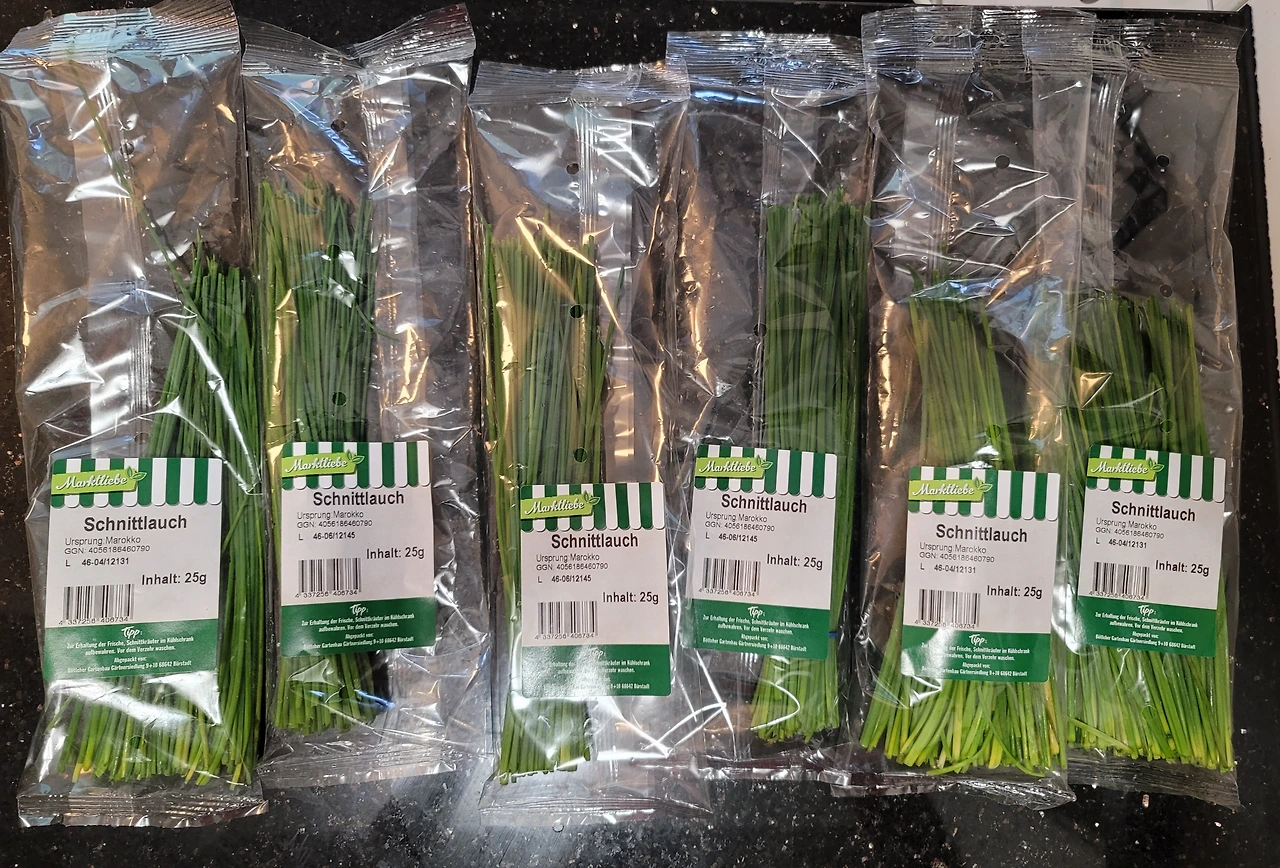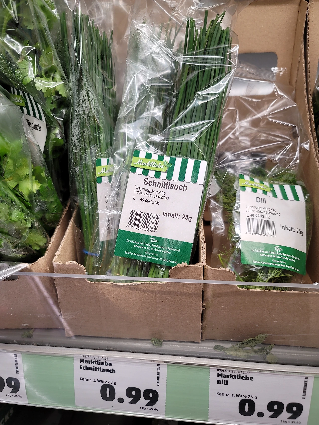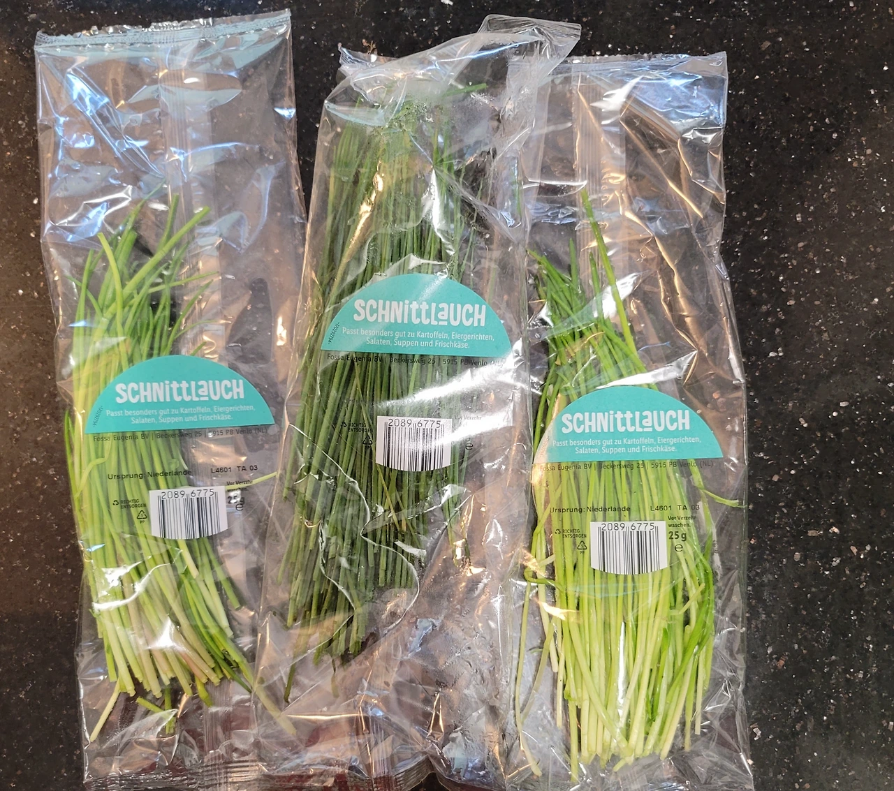 그리고 내가 자주 가는 마트에 가서 부추가 없어 부추는 언제 오냐고 하자 점원은 모른다고 했다. 그렇게 시간이 흘러 다시 마트를 방문했는데 부추가 들어와 있었다. 독일은 부추를 25g짜리로 비닐포장을 해서 판다. 좀 넉넉히 해서 팔아주면 좋으련만 그래도 이게 있는 게 어디냐 하고 얼른 집었다. 이날 고맙게도 부추가 6개나 있었다.