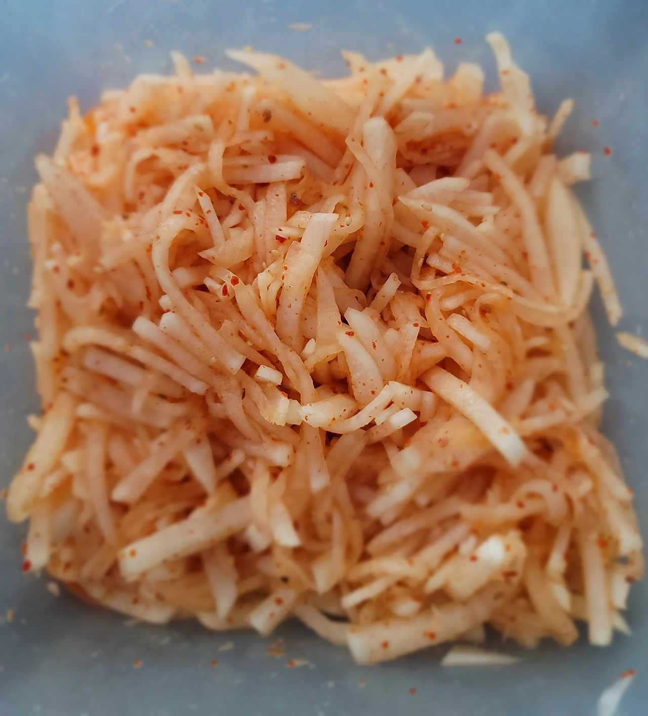 나는 이날 무까지 사 와서 무쌈에 치킨무에 무생채에 양파절임까지 했다. 어느새 냉장고가 가득 채워졌다. 혼자 냉장고를 보며 흐뭇했다.