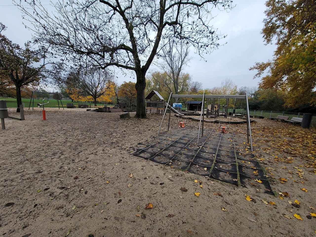 이렇게 비가 오는 날은 독일 공원 놀이터에 사람이 없다. 그리고 우리가 축구 연습을 하러 가는 축구장에도 사람이 없다. 이런 날 자전거를 타고 나가면 놀이터와 축구장을 전세 낼 수 있다.