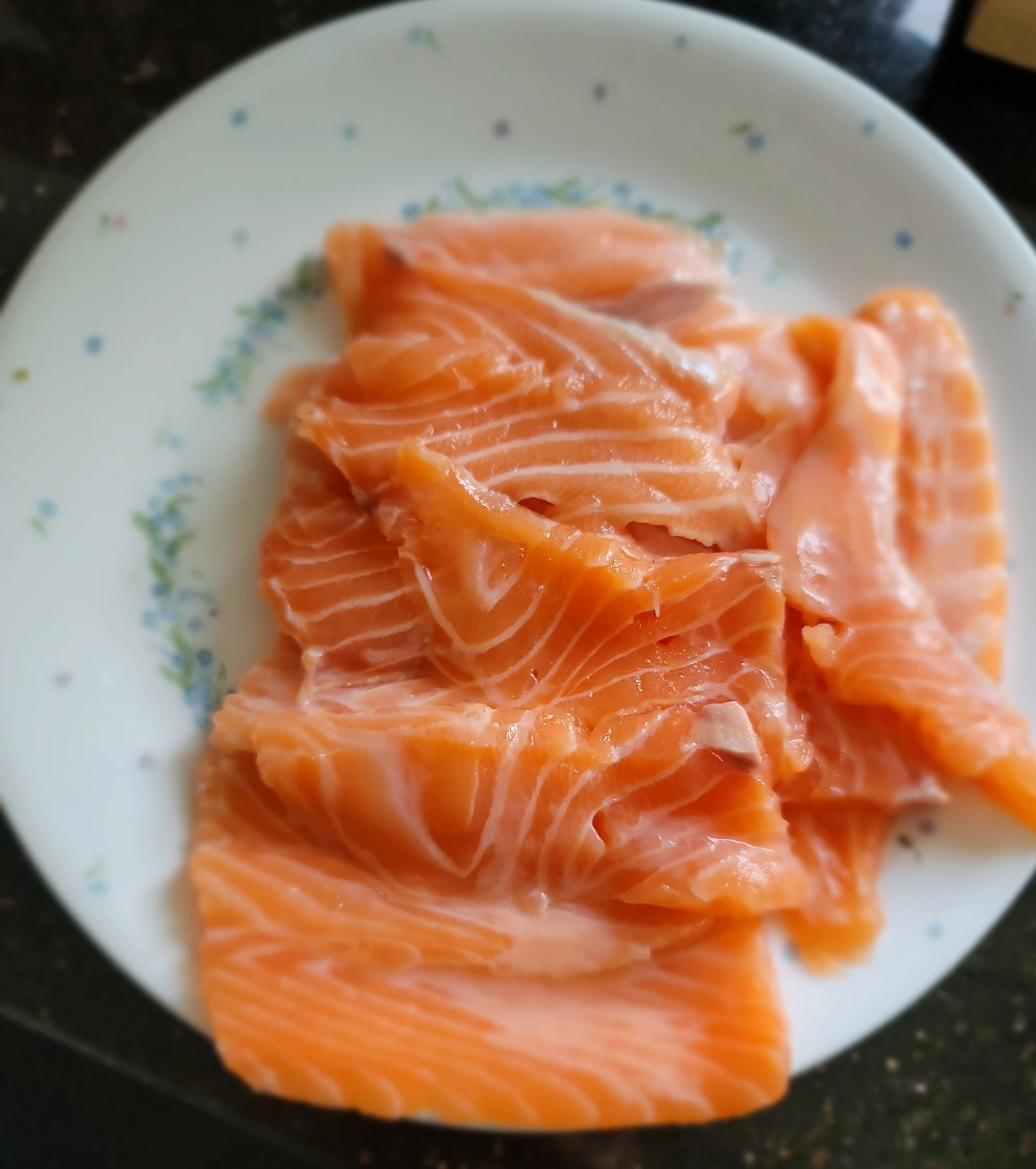 큰 딸의 연어사랑이 이렇다 보니 남편이 주말에 큰 딸을 위한 연어 초밥을 만들어주겠다며 마트에서 두툼한 연어를 사 왔었다. 독일 마트에 초밥을 팔긴 하지만 가격이 비싼 편이다. 그러니 매번 사서 먹기도 부담스러운 면이 있다.
