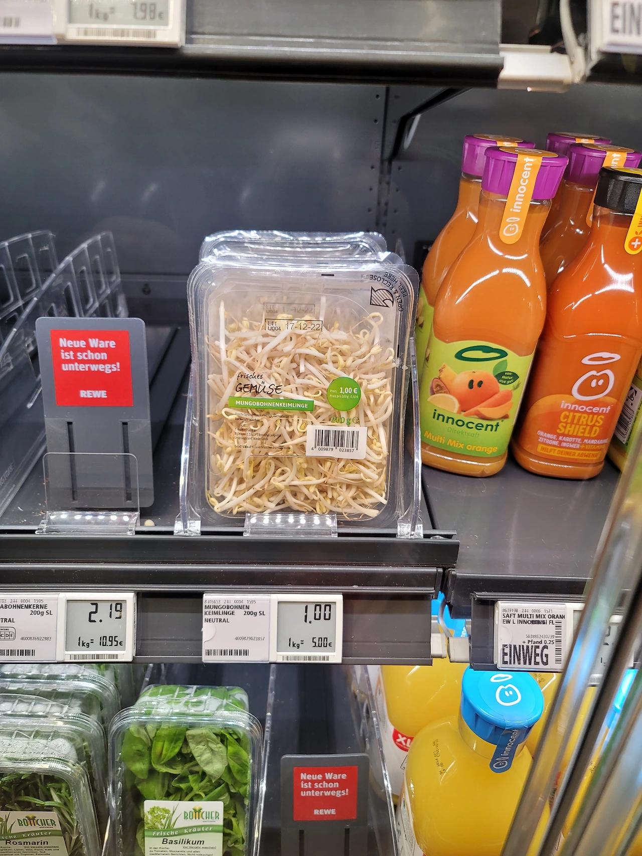 학원을 마치고 사람들이 많은 속에서 마트 나들이를 하면 생각보다 꽤 재밌다. 지난 번 독일 마트에 뭐가 새로 나왔나 보다가 채소 코너에서 콩나물을 발견했다. 독일에 와서 나는 콩나물은 한국에만 있는 줄 알았다.