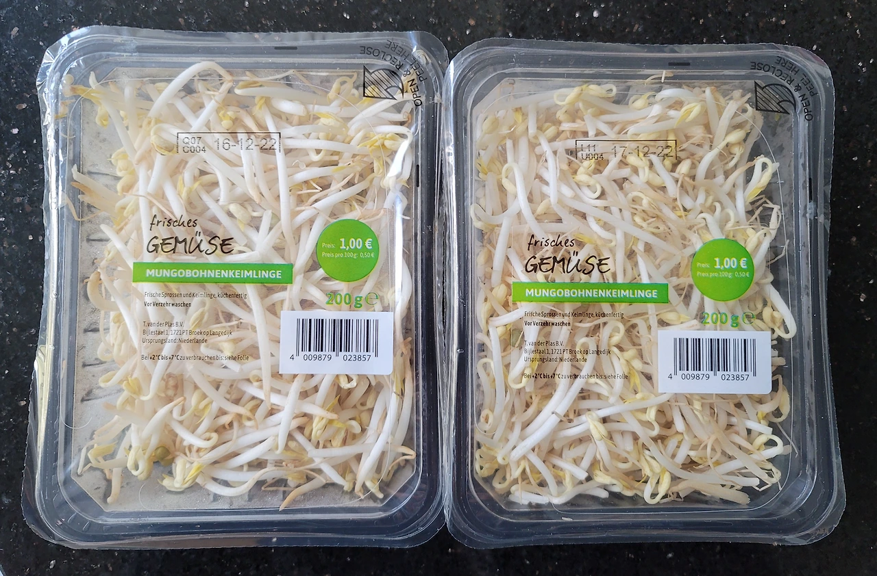 우리 동네 한인마트에는 한국 콩나물이 있고 아시아마트에는 숙주나물이 있다. 콩나물이 한국의 가격이 아니다 보니 매번 사 먹을 수는 없어 나는 주로 아시아 마트에서 숙주나물을 선택해서 먹곤 했다. 그러다 독일 마트에서 발견한 콩나물은 너무나 반가웠다. 또 콩나물이 깔끔하게 팩에 들어있고 유통기한까지 나와있으니 팩에 쓰여있는 대로 신선한 채소였다. 콩나물 200g에 1유로를 하니 우리나라 가격으로 1,379원이다. 나는 2팩을 집었다.
