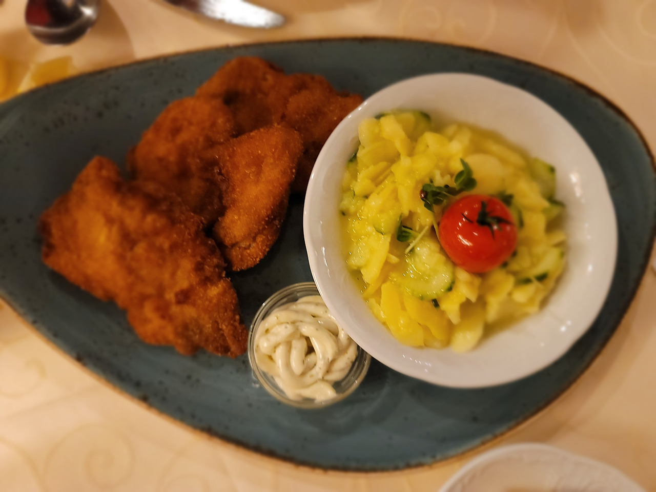 호텔 식당이 이 동네 맛집이었다. 우리는 숙소로 도착해 짐을 풀고 호텔 식당으로 이동했다. 독일식당에 오니 역시 바로 감자튀김이 눈에 띄었다. 아이들도 이탈리아에서 못 먹던 감자튀김 메뉴를 보더니 무조건 감자튀김을 먹어야 한다며 주문했다. 이탈리아에서 먹는 음식들은 뭔가 다채롭고 새로웠다면 독일은 우리에게 익숙한 음식들이었다. 독일에서 400일 넘게 살았다고 독일 음식들이 익숙해지다니 신기할 따름이다.