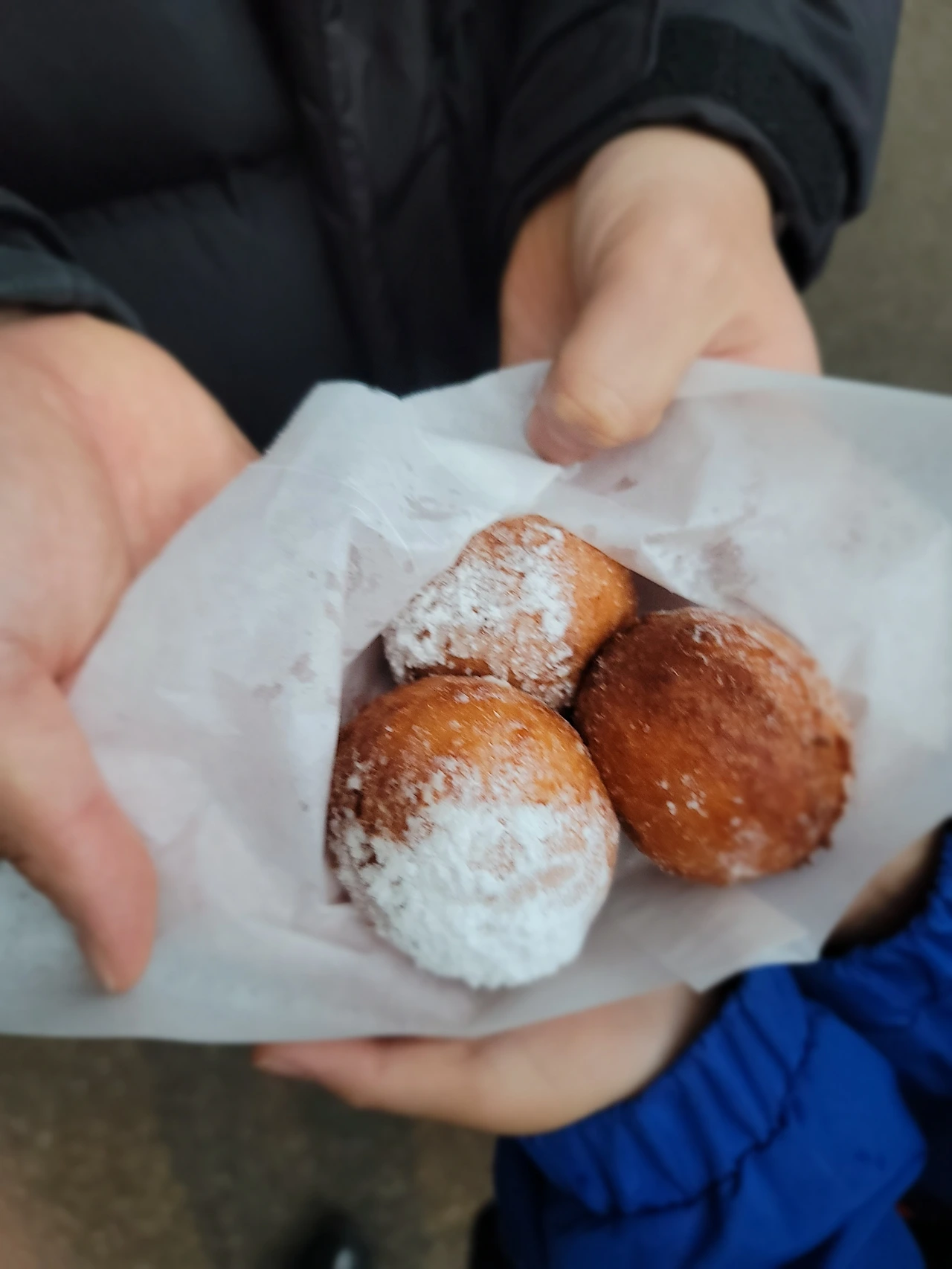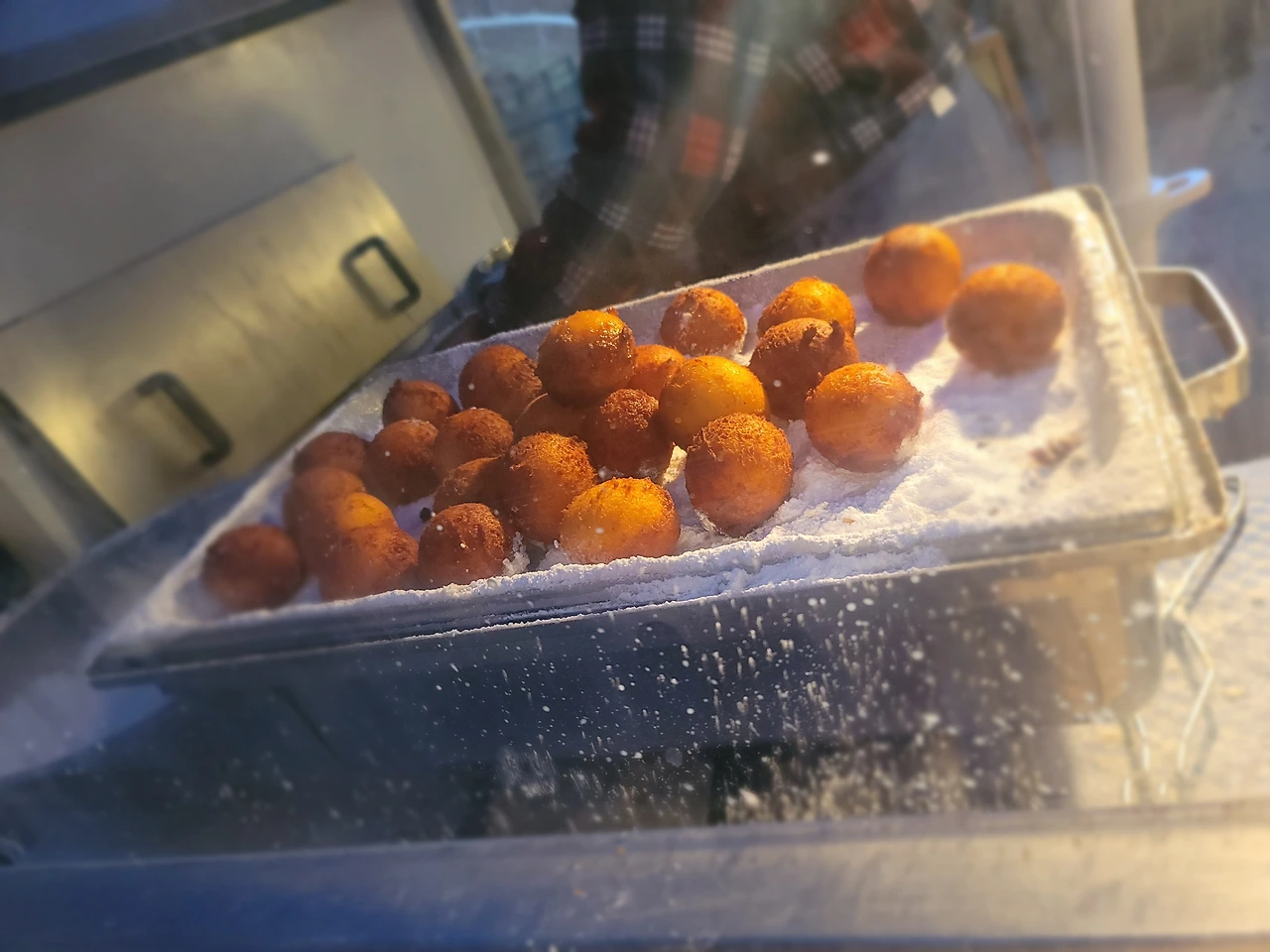 아쉬운 마음을 뒤로한 채 내려오고 있는데 사람들이 줄 서서 먹는 빵이 있어 나도 줄을 서봤다. 그냥 빵 반죽을 아이스크림 숟가락으로 떠서 기름에 튀기고 슈가파우더를 뿌린 디저트였다. 따뜻하고 달콤해서 그나마 위안이 되었다.