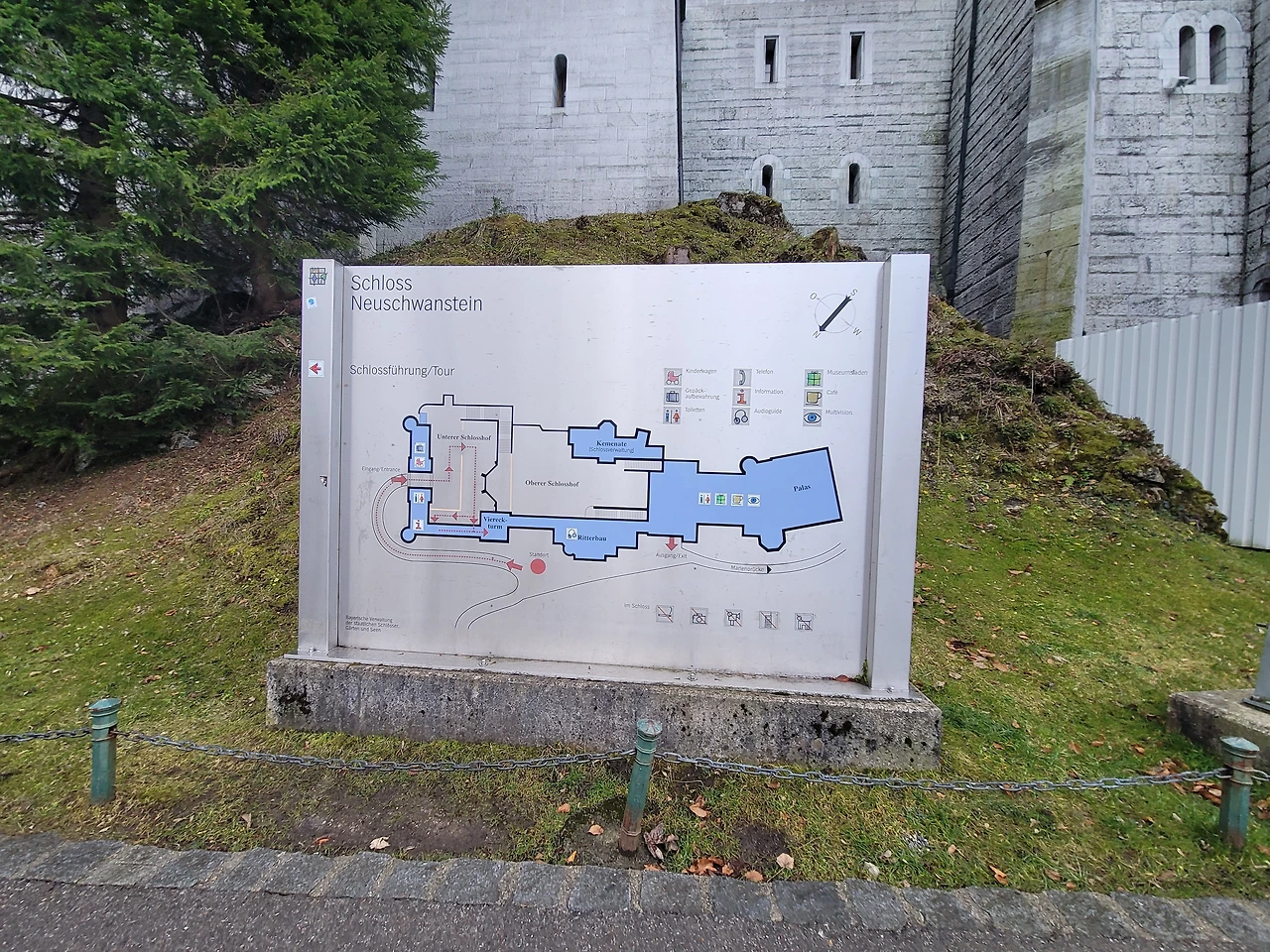 우리가 도착한 노이슈반슈타인성은 바이에른 왕국의 왕 루트비히 2세가 1869년부터 1892년까지 로마네스크 양식으로 지은 성관이다. 독일어로 해석을 해보면 새로운(Neu) 백조(schwan) 석성(stein/Schloss)이다. 그래서 기념품을 보면 백조가 많이 나오는 거 같다