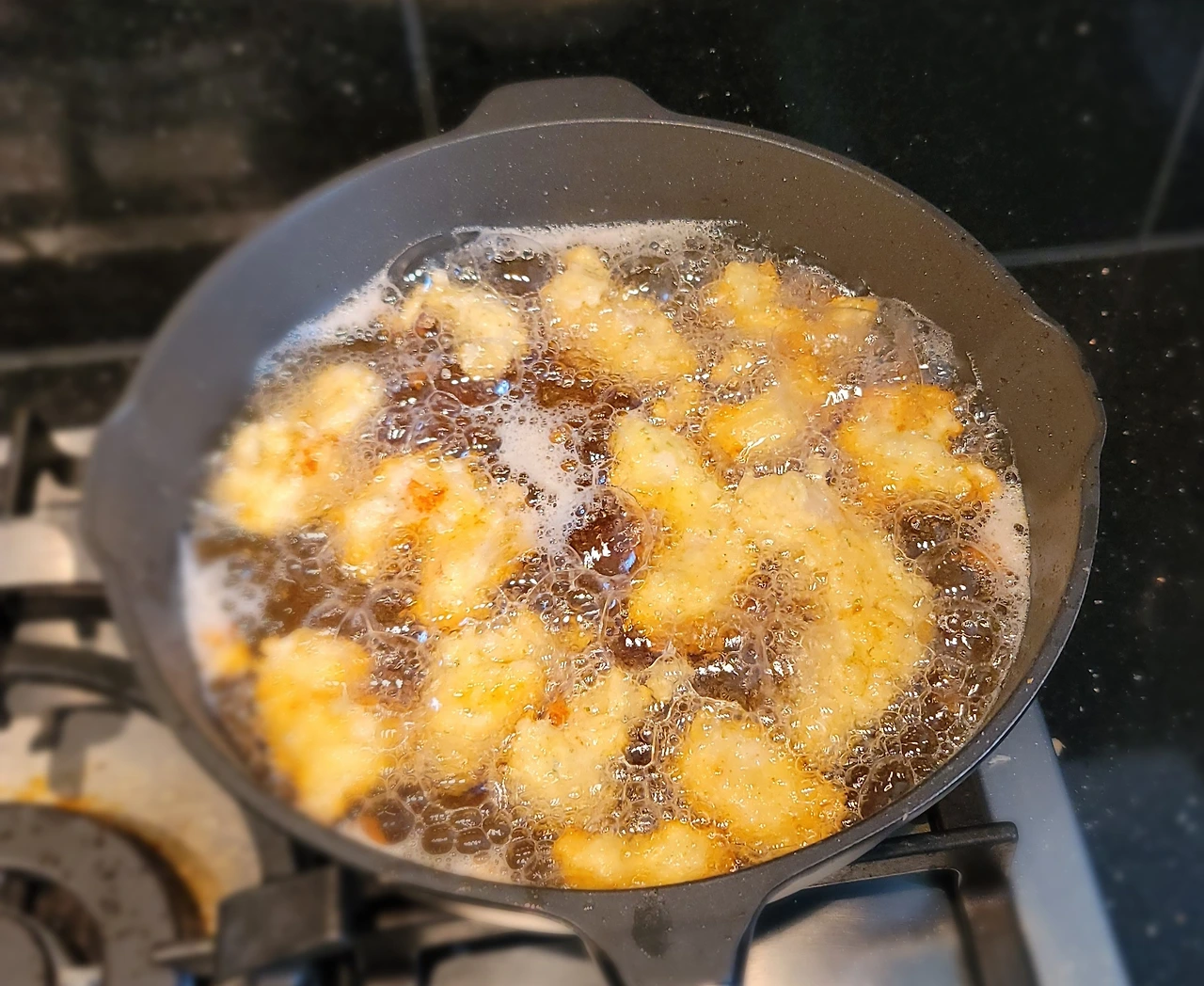 음식 고수님들이 하라는 대로 레시피를 따라 반죽된 튀김 가루에 새우를 넣어 새우튀김을 만들었다. 만들고 있으면 어느 순간 아이들은 부엌에서 좋은 냄새가 난다면서 계속 와서 한 입 먹고 가곤 했다. 나는 새우를 그렇게 좋아하지 않는데 방금 한 새우튀김은 정말 맛있었다.
