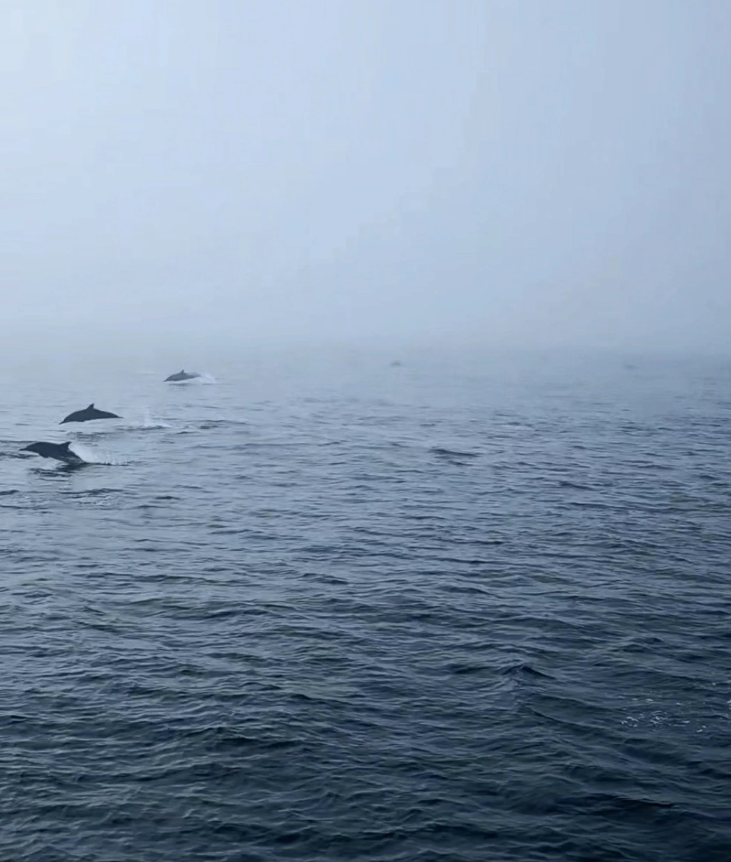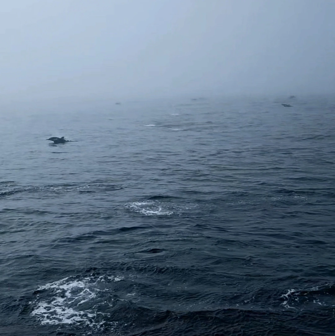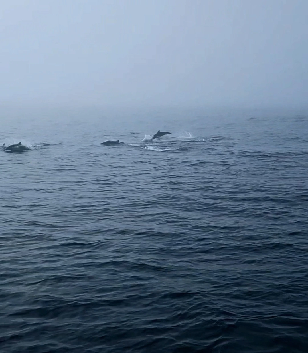 한참을 바다 중심으로 나가다 보니 정말 돌고래 떼를 만났다. 살면서 바다에서 돌고래를 처음 봤다. 핸드폰이 빠질까 강한 힘으로 핸드폰을 잡고 영상을 찍었다. 돌고래의 영상을 브런치에 올려보겠다는 일념으로 찍었는데 어느 정도 성공했다. 돌고래 떼가 너무 멋졌다.