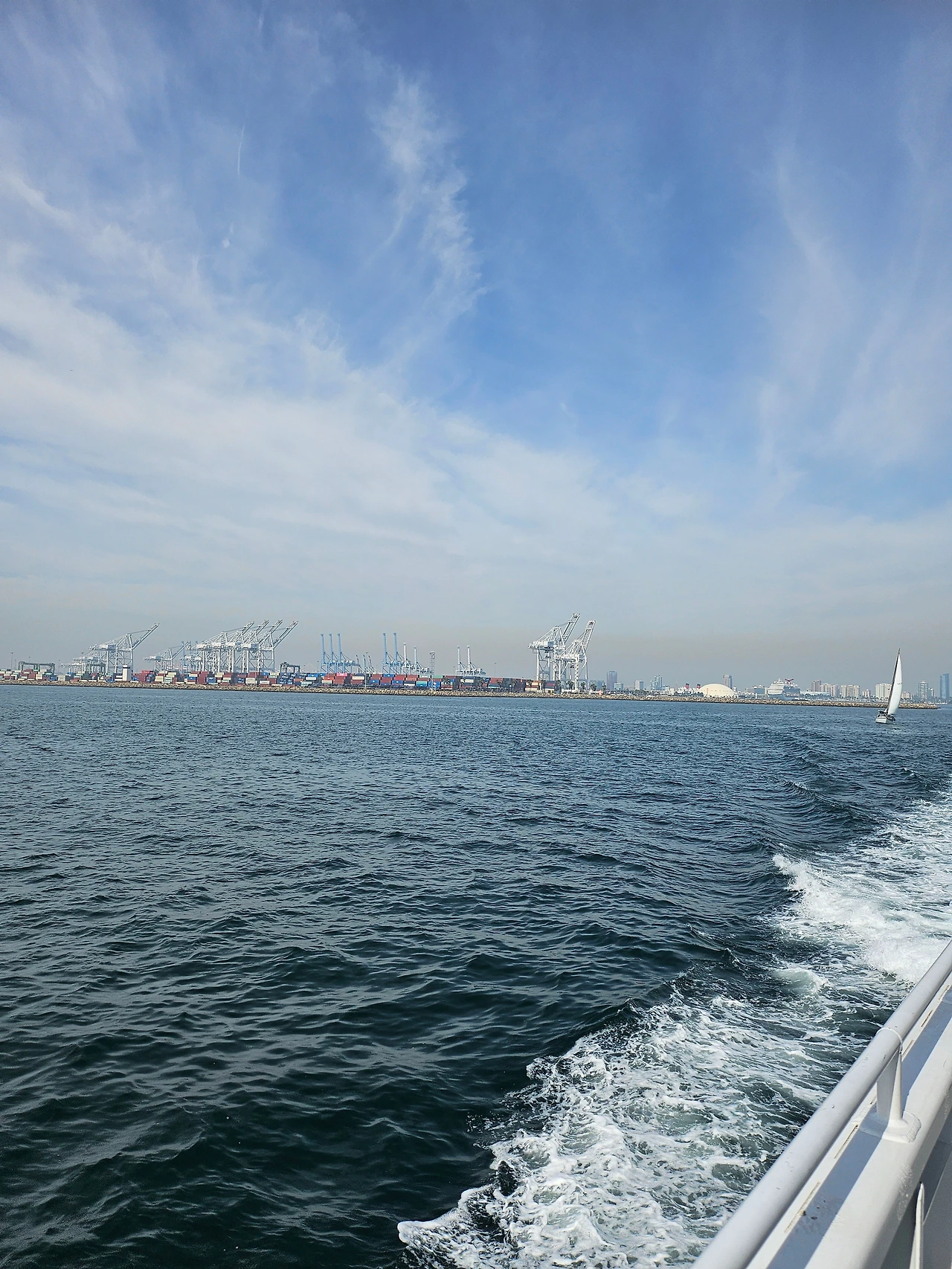 나는 배를 타고 바다로 이렇게 멀리 나가본 적이 없었던 터라 설레기도 하고 떨리기도 했다. 미국 캘리포니아의 낮은 아직도 더운 편인데 바다 바람을 맞으니 굉장히 추웠다.