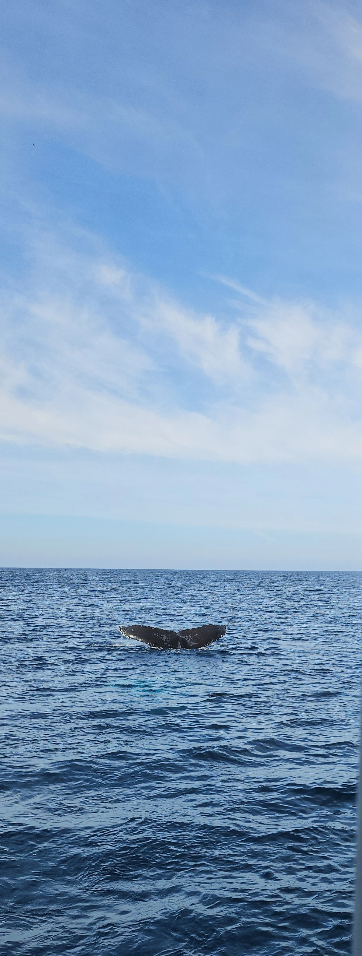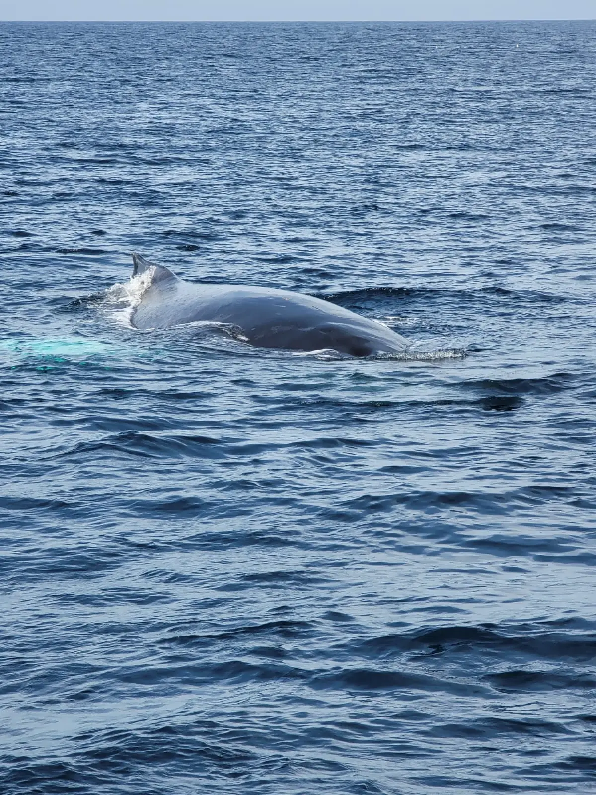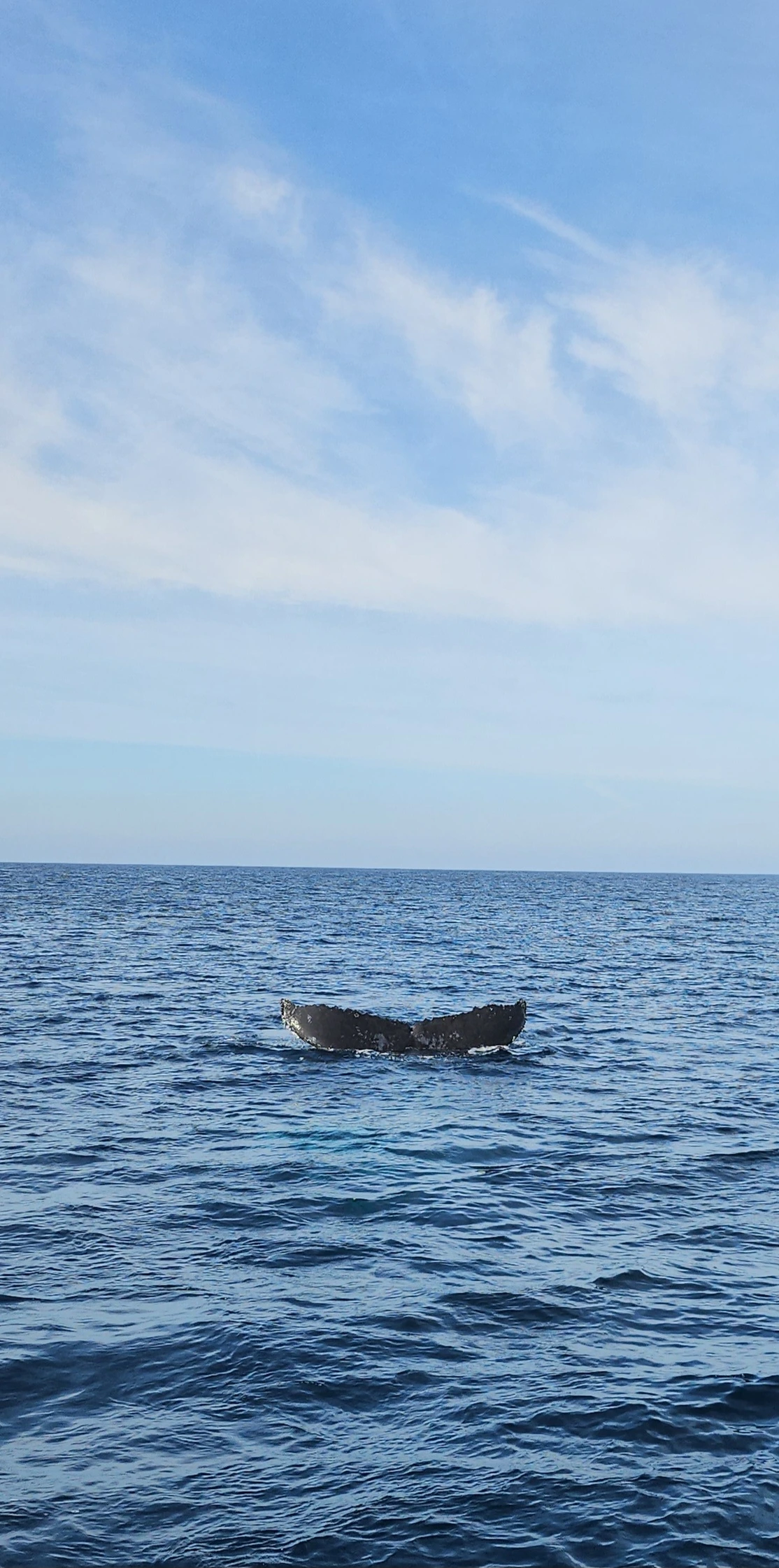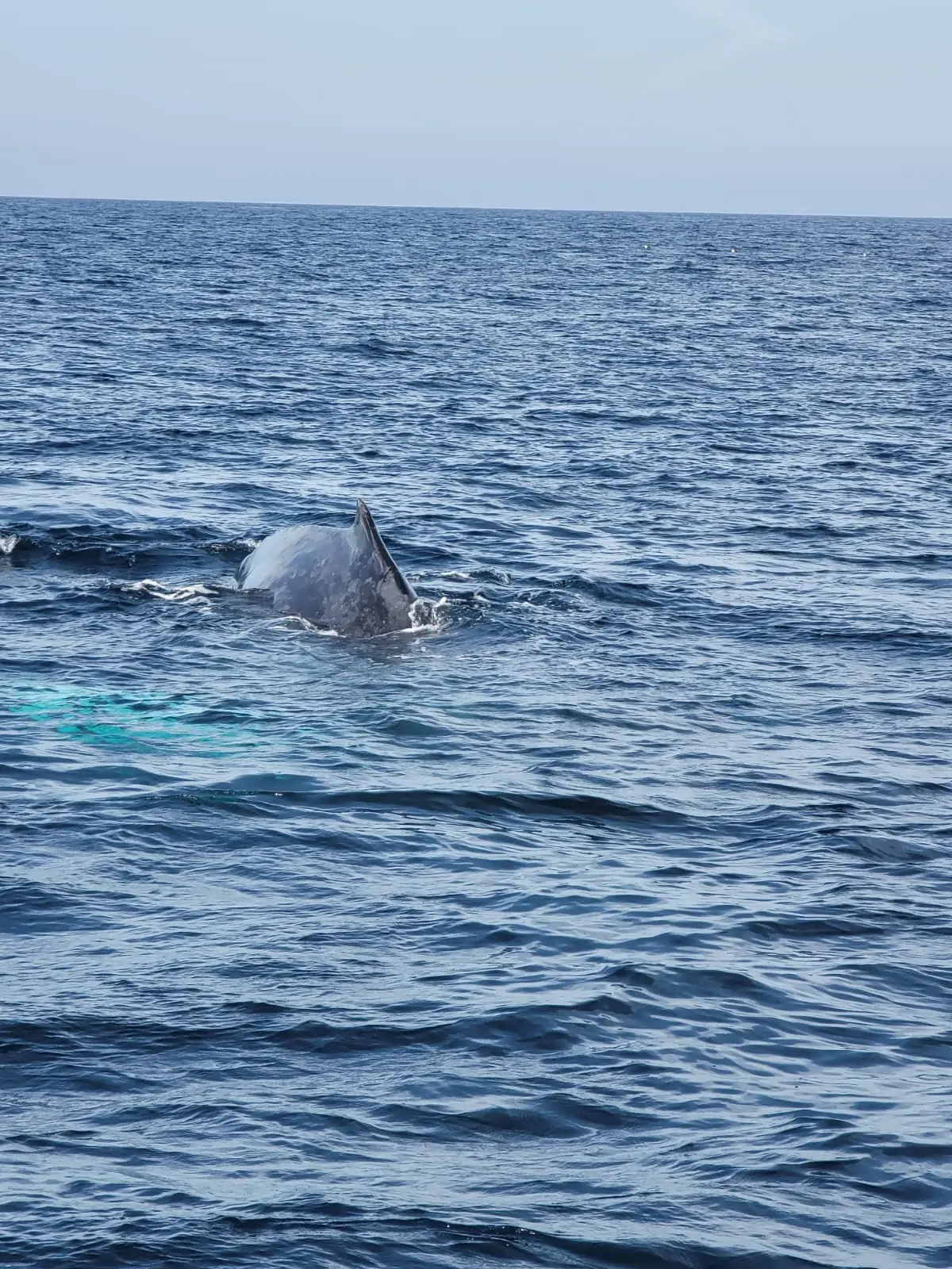 돌고래를 만나고 한참을 가다가 배가 멈췄다. 조금 있으니 사람들의 함성소리가 들렸다. 바다 속에서 고래가 나왔다는 안내방송이 나왔다. 돌고래도 처음이었지만 고래도 처음 바다에서 봤다.