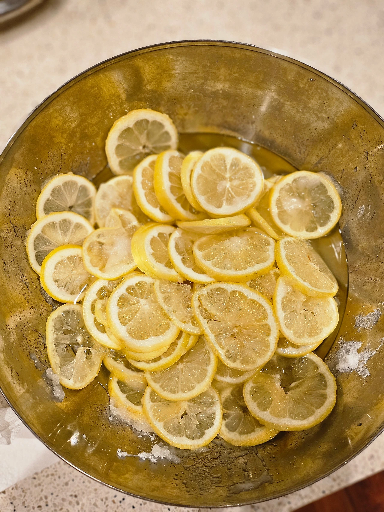 그 후 쓴 맛이 나는 레몬 양 옆을 다 제거한 후 얇게 썰어주고 레몬 씨도 다 빼준다. 설탕을 레몬과 1:1 동률로 한 번 레몬 위에 뿌리고 잘 섞어준 후 다시 설탕을 한 번 더 뿌려주면 된다. 잘 섞은 레몬을 30분가량 놓아둔 후 아까 세척한 유리병에 담아 주면 된다.